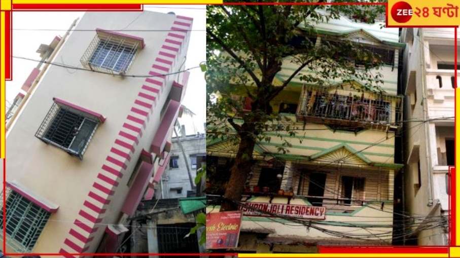 কলকাতার পাশাপাশি হেলে পড়ার ঘটনা নিয়ে আতঙ্কের মধ্যে সেই একই ছবি দেখা গেল হাওড়ার শরৎ চ্যাটার্জি রোডে। সেখানে একে অপরের দিকে হেলে রয়েছে জোড়া ফ্ল্যাটবাড়ি। শুধু তা-ই নয়, বাড়ি দু’টির উপরের অংশ ঠেকেও গিয়েছে।