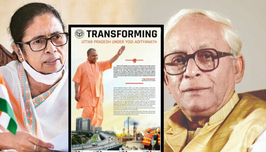 রবিবার সকালে উত্তরপ্রদেশ সরকারের উন্নয়ন কর্মযজ্ঞের বিজ্ঞাপন একটি সংবাদপত্রের পাতাজুড়ে দেওয়া হয়েছে। সেই বিজ্ঞাপনে মা উড়ালপুলের ছবি দিয়ে দাবি করা হয়েছে, এভাবেই উন্নয়ন হচ্ছে উত্তরপ্রদেশে। এরপরই বিজেপির উন্নয়ন মডেলকে নিশানা করেন অভিষেক বন্দ্যোপাধ্যায় থেকে শীর্ষ তৃণমূল নেতারা। সাংবাদিক বৈঠকে তৃণমূলের জাতীয় মুখপাত্র ডেরেক ওব্রায়েন (Derek O'Brien) বলেন,'বাংলায় যে মমতা বন্দ্যোপাধ্যায়ের নেতৃত্বে উন্নয়ন হয়েছে তা মেনে নিলেন যোগী আদিত্যনাথ।' এটা জালিয়াতি নয়। বরং ভুল বলে ব্যাখ্যা দিয়েছেন বিজেপি নেতা শমীক ভট্টাচার্য। দ্বিমুখী লড়াইকে ত্রিমুখী হয়েছে বাম-সংযোজনে। সিপিএমের রাজ্য সম্পাদক সূর্যকান্ত মিশ্র ফেসবুকে একটি ব্যঙ্গচিত্র পোস্ট করেন। 'মিথ্যার কি অপার মহিমা' নামে ওই ব্যঙ্গচিত্রে দেখা যাচ্ছে,পরমা উড়ালপুল হাতে বুদ্ধদেব ভট্টাচার্য। তা মা হল মমতার হাতে। যোগী সেটাই দেখালেন উত্তমপ্রদেশ হিসেবে।