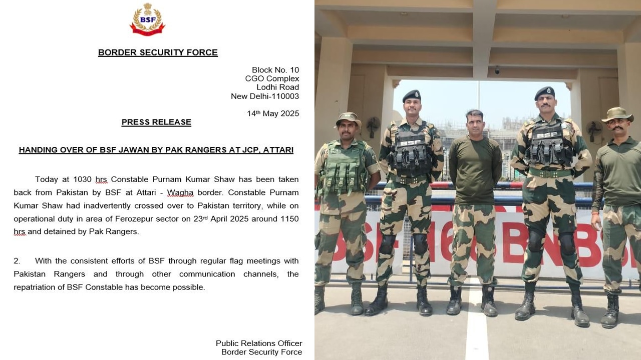 গত ২২ এপ্রিল কাশ্মীরের পহেলগাঁওয়ে ২৬ জন পর্যটককে হত্যা করে জঙ্গিরা। পরদিন অর্থাত্ ২৩ এপ্রিল পঞ্জাবের ফিরোজপুর সীমান্তে সীমানা পার করার জন্য পাক রেঞ্জার্সরা পুর্ণম কুমার সাউকে আটক করে। তার পর থেকে দুদেশের মধ্যে টানাপোড়েন শুরু হয়ে যায়। ভারত পাকিস্তানের ৯ জঙ্গিঘাঁটিতে আঘাত করে ভারত। ফলে পরিস্থিত আরও খারাপ হয়ে যায়। পুর্ণমের ফেরার বিষয়টি জটিল হয়ে ওঠে। কিন্তু আজ পাকিস্তানের ওয়াঘা বর্ডারে ভারতের হাতে তুলে দেওয়া হয় পুর্ণমকে।