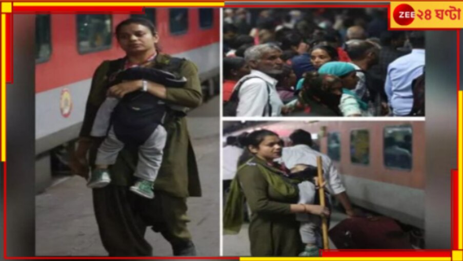 জি ২৪ ঘণ্টা ডিজিটাল ব্যুরো: ঘুমন্ত বাচ্চা কোলেই নিউ দিল্লি স্টেশনের ভিড় সামলাচ্ছেন এক আরপিএফ অফিসার। ইতিমধ্যেই সোশ্যাল মিডিয়ায় ভাইরাল সেই ছবি। দেখা যাচ্ছে, রিনা নামে ওই আরপিএফ অফিসার উর্দি গায়েই একহাতে কোলের বেবি-ক্যারিয়ারে ঘুমন্ত বাচ্চাকে সামলাচ্ছেন। আরেক হাতে লাঠি ধরে ভিড় নিয়ন্ত্রণ করছেন। হুইসেল বাজাচ্ছেন।