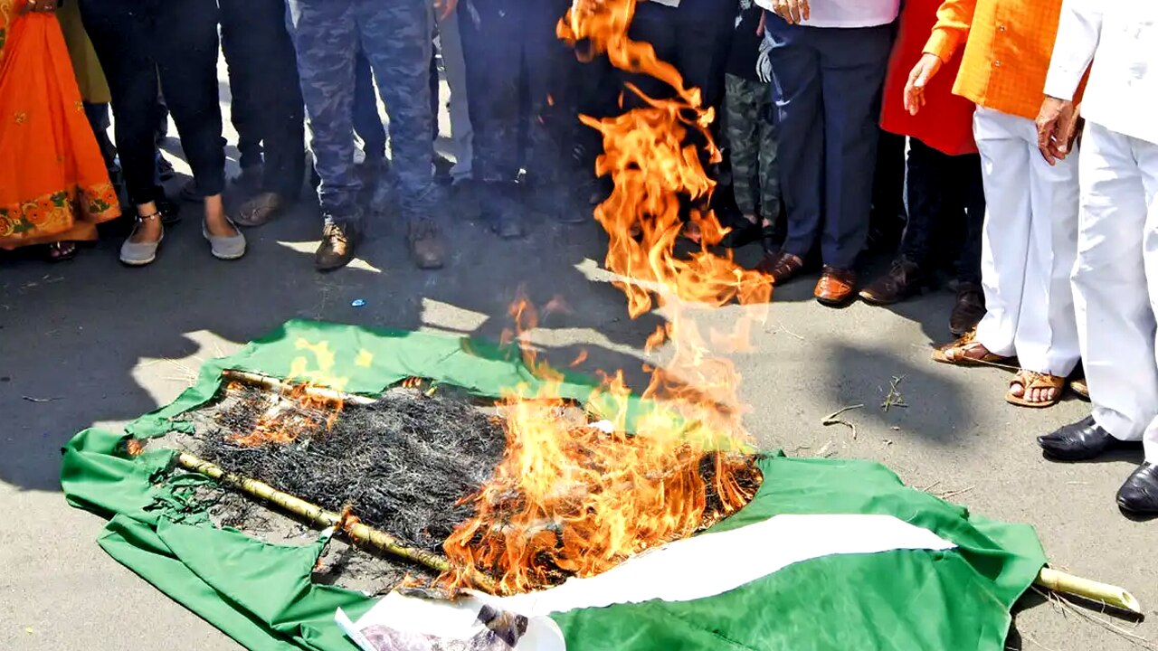 মন্ত্রী মোদীজির কুশপুত্তলিকা পোড়ান
