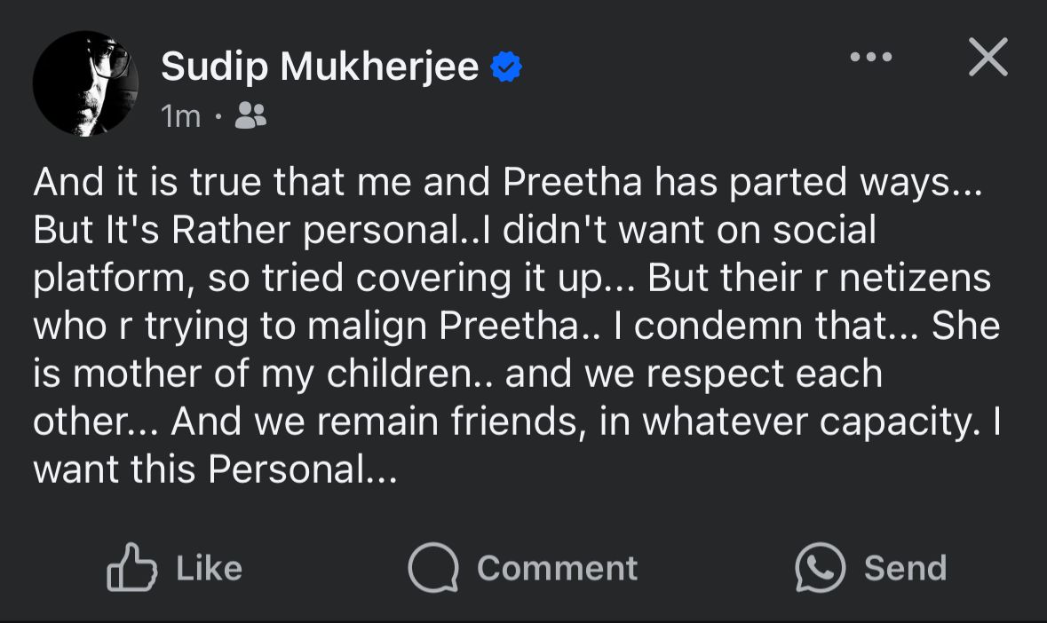 Sudip Mukherjee-Preetha Chakraborty Divorce: 'এটা সত্যি যে আমি আর পৃথা আলাদা হয়ে গিয়েছি। কিন্তু এটা খুবই ব্যক্তিগত। আমি এটাকে সোশ্যাল মিডিয়ায় আনতে চাইনি। তাই ধামাচাপা দেওয়ার চেষ্টা করেছি', সমস্ত জল্পনার অবসান ঘটিয়ে বিচ্ছেদে সিলমোহর দিলেন সুদীপ মুখোপাধ্যায়।