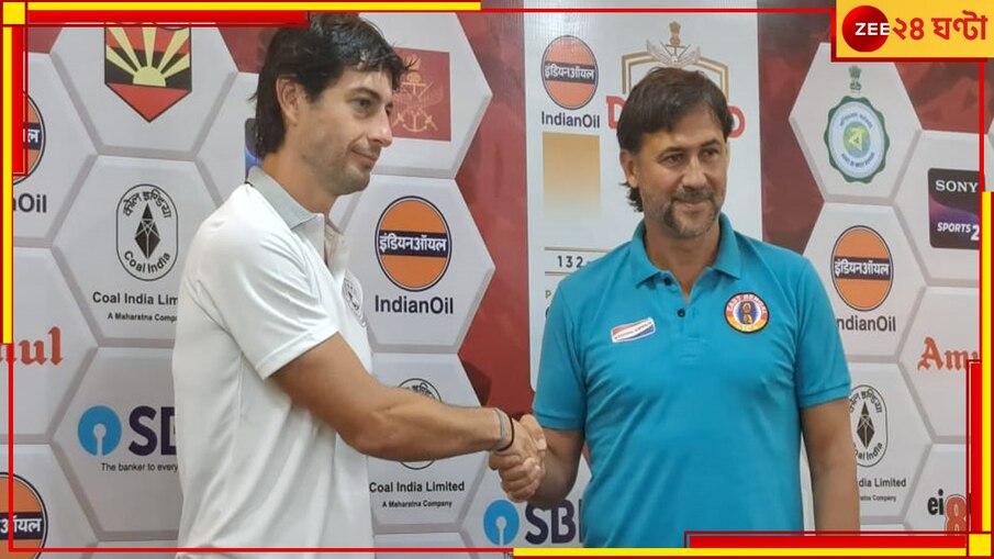 জি ২৪ ঘণ্টা ডিজিটাল ব্যুরো: রাত পোহালেই মরসুমের প্রথম ডার্বি (Kolkata Derby)। শনিবার বিকেলে ডুরান্ড কাপে (Durand Cup 2023) হাইভোল্টেজ মহারণ। যুবভারতী ক্রীড়াঙ্গনে ইস্টবেঙ্গল (East Bengal FC) বনাম মোহনবাগান সুপার জায়ান্ট (Mohun Bagan Super Giant)। বিগত শেষ আটটি ডার্বি ম্যাচেই ইস্টবেঙ্গল হেরেছে মোহনবাগানের কাছে। যা যে কোনও লাল-হলুদ সমর্থকের বুকে পেরেকের মতো বিঁধছে। অন্যদিকে সবুজ-মেরুন সমর্থকরা কোথাও ধরেই নিয়েছেন যে, আগামিকালও ইতিহাসের প্রত্যাবর্তনই ঘটবে। ডার্বির আগের দিন যুবভারতী ক্রীড়াঙ্গনের মিডিয়া সেন্টারে সাংবাদিক বৈঠক করলেন ইস্টবেঙ্গলের নতুন কোচ কার্লেস কুয়াদ্রাত (Carles Cuadrat) ও লেফট-ব্যাক মন্দার রাও দেশাই (Mandar Rao Desai)। অন্যদিকে মোহনবাগানের হয়ে হাজির ছিলেন জুয়ান ফেরান্দো (Juan Ferrando) ও অজি ফরোয়ার্ড দিমিত্রি পেত্রাতোস (Dimitri Petratos)।
