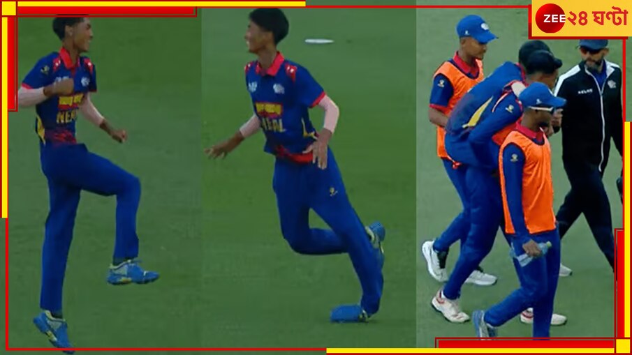 জি ২৪ ঘণ্টা ডিজিটাল ব্যুরো: বয়স অল্প তাই তাঁর প্রাণশক্তিও ভরপুর, আর উত্তেজনার বশেই ডেকে আনলেন বিপদ! যুব এশিয়া কাপে (U19 Asia Cup) খবরে নেপালি স্পিনার যুবরাজ খত্রী (Yuvraj Khatri)! উইকেট নিয়ে এমন উদ্দাম উদযাপনে মাতলেন, যে শেষে চোট পেয়ে সতীর্থের কাঁধে চেপে ফিরতে হল সাজঘরে। গত রবিবার দুবাই আন্তর্জাতিক স্টেডিয়ামে অনূর্ধ্ব-১৯ বিশ্বকাপে বাংলাদেশ মুখোমুখি হয়েছিল নেপালের। খত্রী ৬ ওভার হাত ঘুরিয়ে ২৩ রান দিয়ে ৪ উইকেট নিয়ে নজর কেড়েছেন, তেমনই মাঠে তাঁর কাণ্ডও তুমুল চর্চায়।