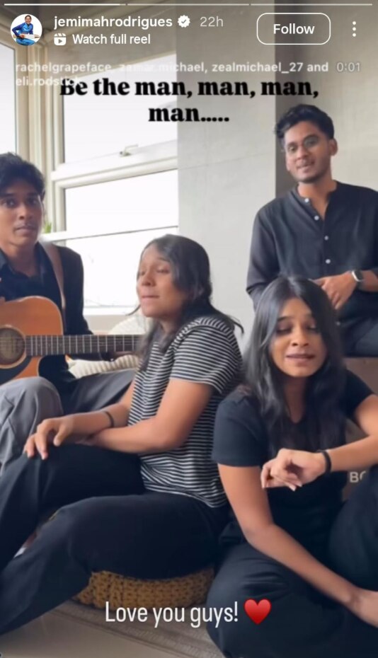 এসবের মাঝেই এবার স্মৃতির জাতীয় দলের প্রিয় বান্ধবী জেমিমা রড্রিগেজ আসরে। নাম না করেই পলাশের 'পুরুষত্ব' নিয়ে প্রশ্ন তুলে দিলেন। ইনস্টাগ্রামে একটি রিলস শেয়ার করেছেন জেমিমা। সেখানে দেখা যাচ্ছে একদল অল্পবয়সী ছেলেমেয়ে, ব্রিটিশ গায়িকা ওলিভিয়া ডিনের চলতি বছরের হিট গান 'ম্যান আই নিড' গাইছেন গিটার বাজিয়ে। আর সেই রিলস শেয়ার করে জেমিমা বোল্ডে লিখেছেন, 'বি দ্য ম্যান, ম্যান, ম্যান, ম্যান...'! এখন নেটপাড়া মনে করছে জেমিমা সুকৌশলে পলাশকেই ধুয়ে দিয়েছেন। এর আগে স্মৃতি-পলাশের বিয়ে স্থগিত হওয়ার সময়েও জেমিমা বড় সিদ্ধান্ত নিয়েছিলেন। মহিলা বিগ ব্যাশ লিগের বাকি ম্যাচগুলিতে অংশ নিতে অস্ট্রেলিয়ায় ফিরবেন না। তাঁর দল ব্রিসবেন হিট তাঁকে টুর্নামেন্ট থেকে অব্যাহতি দিতে সম্মত হয়েছিল।