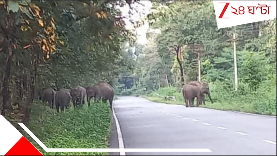 অরূপ বসাক: ডুয়ার্সের চাপড়ামারি জঙ্গলে ধরা পড়ল অপূর্ব এক দৃশ্য-- রাস্তার ধারে দাঁড়িয়ে বিশাল হাতির দল, আর তাদের মাঝখানে টলমল পায়ে হাঁটা এক আদুরে শাবক। মুহূর্তটি যেন ডুয়ার্সের প্রকৃতির হাতে আঁকা এক জীবন্ত ছবি।