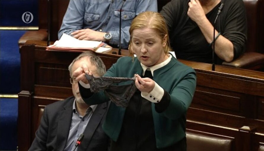 I hear cameras cut away from me when I displayed this underwear in #Dáil. In courts victims can have their underwear passed around as evidence and it's within the rules, hence need to display in Dáil. Join protests tomorrow. In Dublin it's at Spire, 1pm.#dubw #ThisIsNotConsent pic.twitter.com/DvtaJL61qR