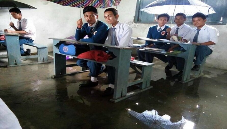 'ক্লাসে' বৃষ্টি পড়ছে যে, ছাতা মাথাতেই চলছে পঠনপাঠন!