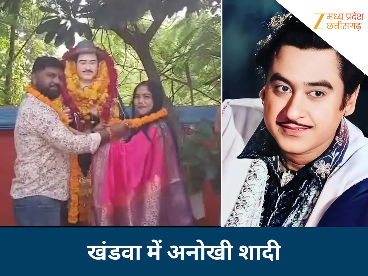MP News: खंडवा स्थित किशोर कुमार की समाधि पर सूबह अलग नजारा देखा गया. यहां नागपुर से आए दो गायकों ने किशोर दा को साक्षी मान शादी रचाई है.