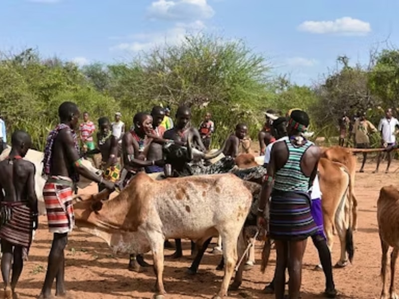 Hamar Tribe: दुनिया में शादी की रस्में अलग-अलग तरीकों से मनाई जाती हैं, लेकिन इथियोपिया की हमर जनजाति की परंपरा सबसे अनोखी और रोमांचक मानी जाती है. यहां लड़कों को शादी से पहले अपनी बहादुरी, साहस और फिटनेस साबित करनी पड़ती है. इसके लिए उन्हें बैलों की पीठ पर दौड़ना होता है. यह परंपरा सिर्फ एक रस्म नहीं है, बल्कि युवकों के जीवन में बड़े बदलाव का संकेत देती है. सफल होने पर वे शादी करने, मवेशी पालने और जनजाति में सम्मान पाने के पात्र बनते हैं. यह रस्म संस्कृति, साहस और जीवन के नए अध्याय की अनूठी झलक दिखाती है.