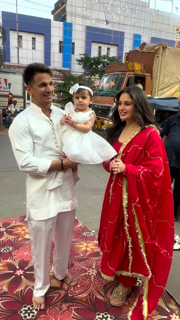 इस खास मौके पर युविका लाल रंग के सूट पहने नजर आई और प्रिंस सफेद कुर्ता-पायजामा में नजर आए. कपल की बेटी सफेद कलर की ड्रेस पहने नजर आ रही हैं और अपने पापा के साथ ट्विनिंग करती बहुत प्यारी दिख रही हैं.