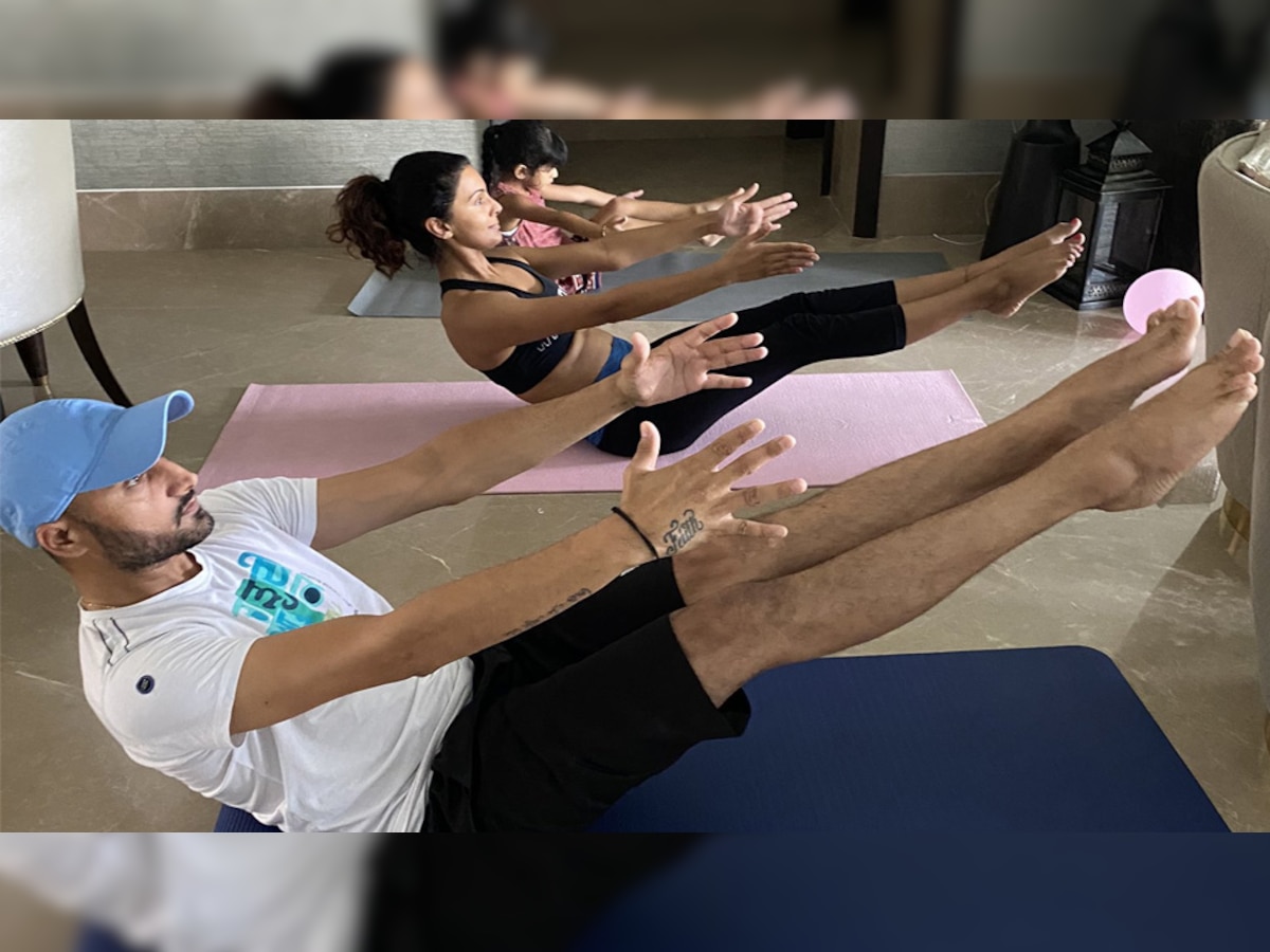 हरभजन सिंह ने पत्नी गीता बसरा और बेटी हिनाया हीर के साथ योग करते हुए तस्वीर शेयर की. गीता ने एक वीडियो शेयर किया। उन्होंने कहा, 'योग जीवन है.'