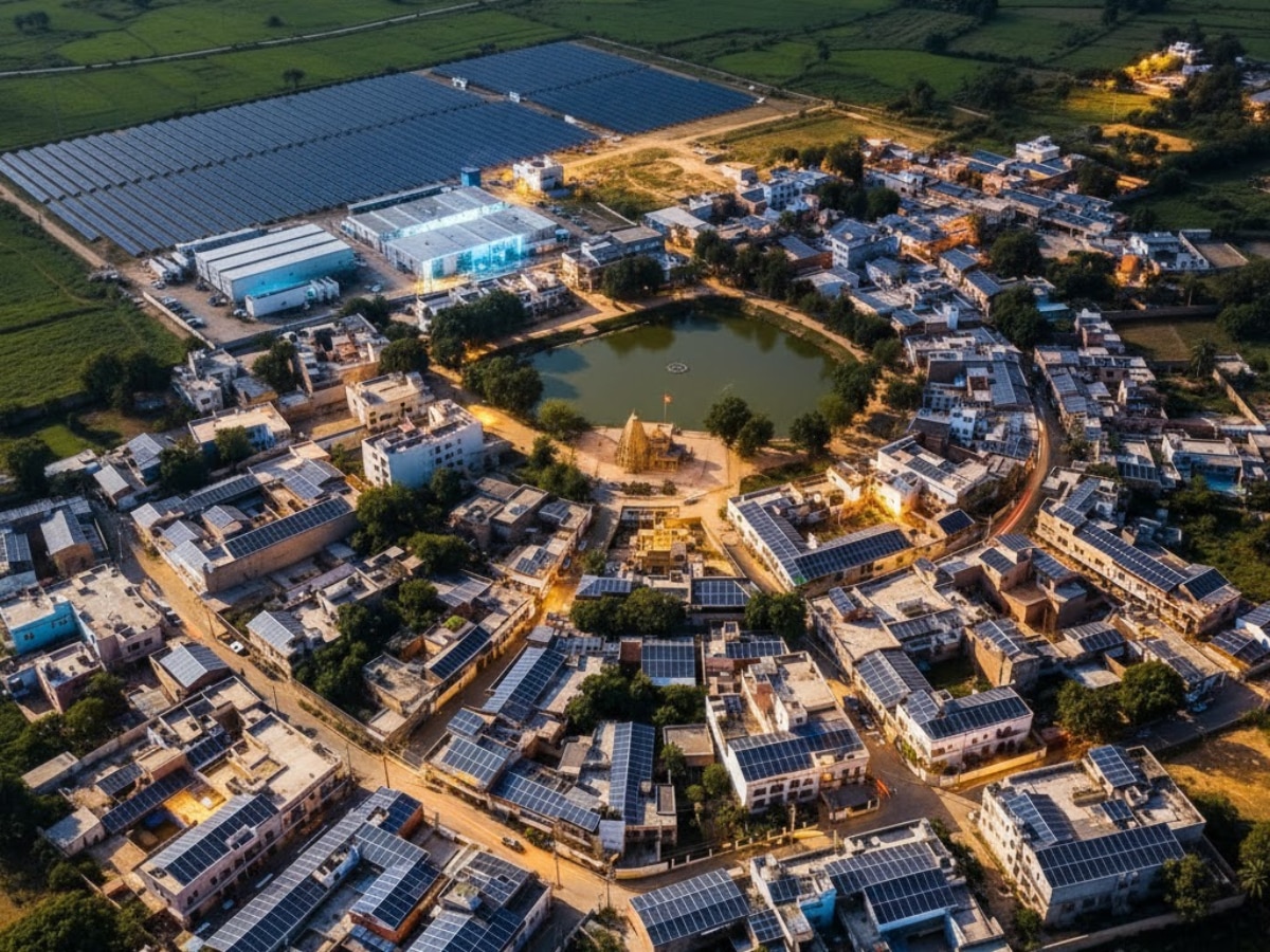 India first solar village: यह देश का पहला ऐसा गांव है जो पूरी तरह सोलर पावर पर चलता है. यहां बिजली कटौती जीरो है और हर घर स्वच्छ ऊर्जा का इस्तेमाल करता है.