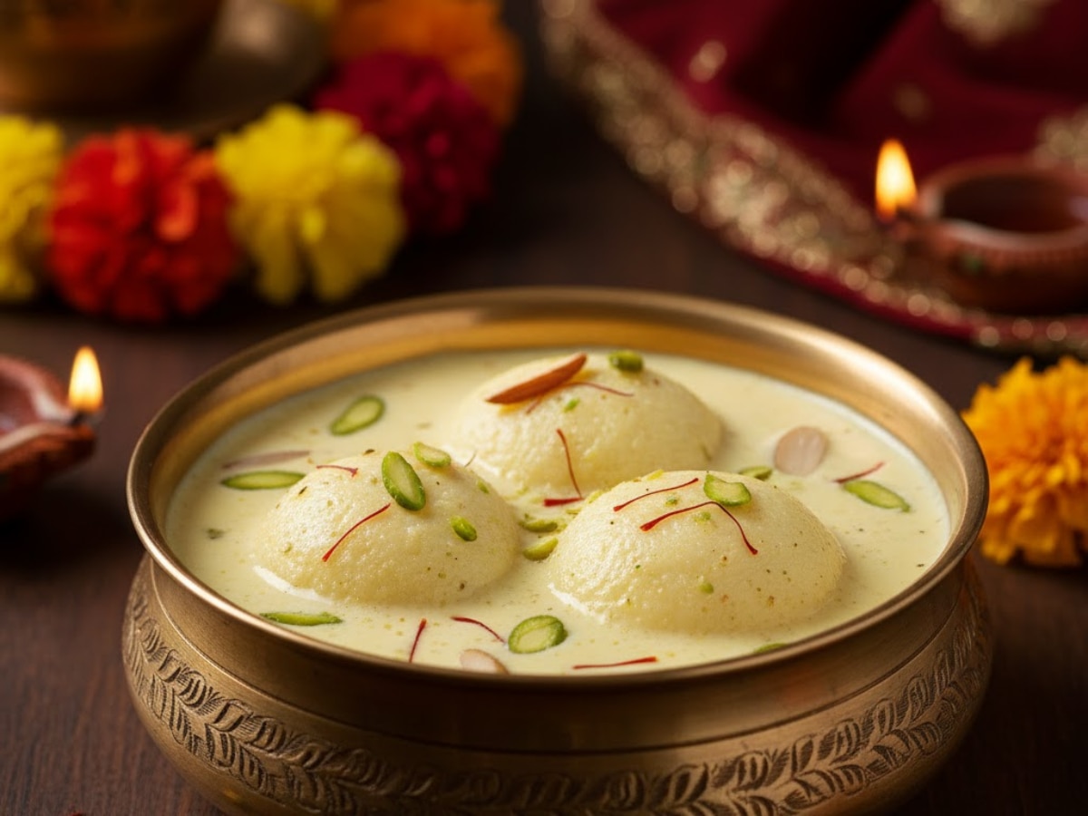 चेना के फ्लैट गोले मलाईदार रस में डूबे, केसर-पिस्ता से सजी हुई मिठाई. इसमें भी चाशनी की जगह मीठे दूध का उपयोग होता है, जो इसे और भी रसीला बना देता है.