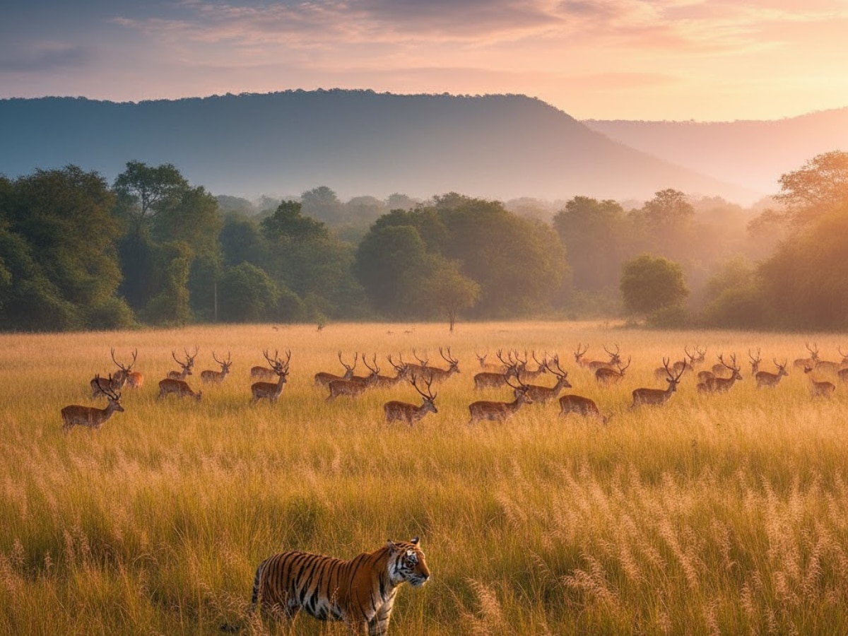 Jungle Safari India: भारत में नवंबर का महीना जंगल सफारी और बाघ देखने के लिए सबसे बढ़िया समय माना जाता है. इस समय जंगल हरे-भरे होते हैं और आसमान साफ रहता है, जिससे जाजारा और भी खूबसूरत दिखाई देता है.