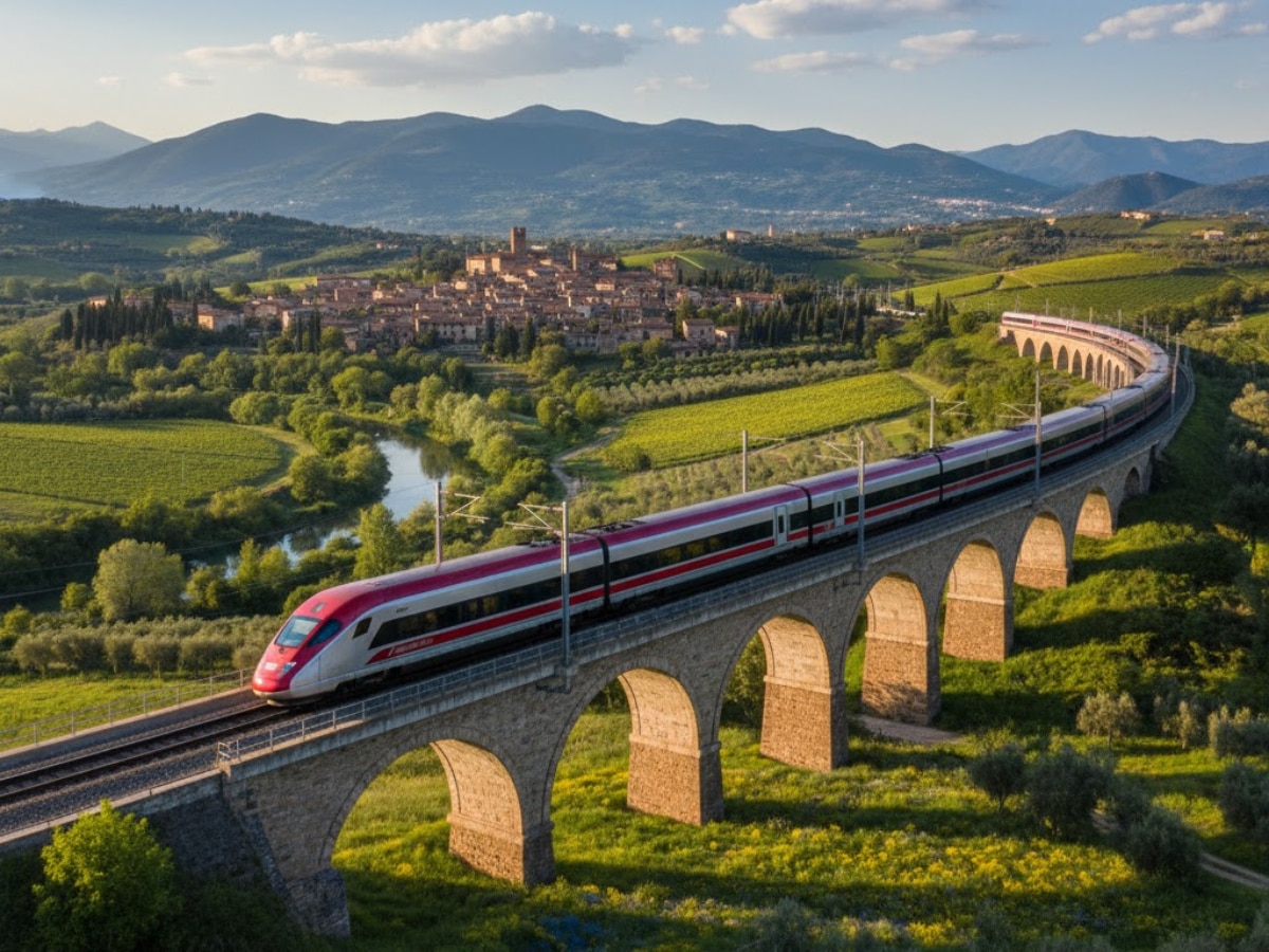 इटली की Frecciarossa 1000 ट्रेन 300 किमी/घंटा की रफ्तार से चलती है. यह मिलान, रोम और बड़े शहरों को जोड़ती है और यात्रा को आरामदायक और तेज बनाती है.