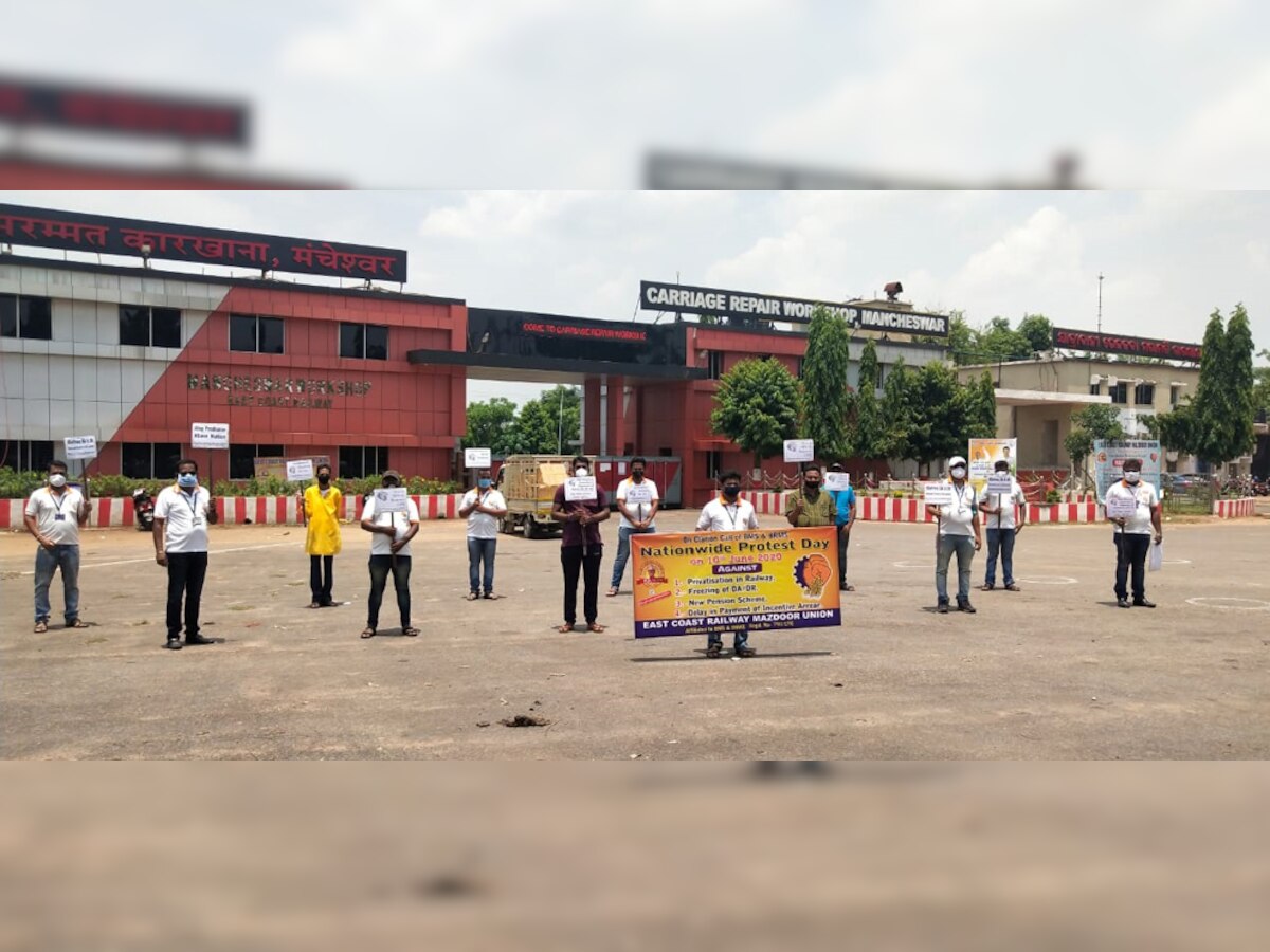 ଭୁବନେଶ୍ୱର: ଘରୋଇକରଣ ଏବଂ ନିଗମୀକରଣ ବିରୁଦ୍ଧରେ ଆନ୍ଦୋଳନକୁ ଓହ୍ଲାଇଲା ରେଲୱେ ମଜଦୂର ସଂଘ | ଭାରତୀୟ ମଜଦୁର ସଂଘ ଏବଂ ଭାରତୀୟ ରେଲୱେ ମଜଦୁର ସଂଘର ଆହ୍ୱାନ କ୍ରମେ ସମ୍ପୂର୍ଣ୍ଣ ଭାରତୀୟ ରେଲୱେର ବିଭିନ୍ନ ଜୋନ ମୁଖ୍ୟାଳୟ, ଡିଭିଜନ ଅଫିସ ଏବଂ ଆଞ୍ଚଳିକ ଶାଖା ସ୍ତରରେ ଭାରତ ସରକାରଙ୍କ ଦ୍ୱାରା ଶ୍ରମିକ ବିରୋଧି ନୀତି ଲାଗୁ କରିବା, ଘରୋଇକରଣ ଏବଂ ନିଗମୀକରଣକୁ ପ୍ରୋତ୍ସାହନ ଦେବା ବିରୋଧରେ ଏହି ବିକ୍ଷୋଭ ଅନୁଷ୍ଠିତ ହୋଇଛି |