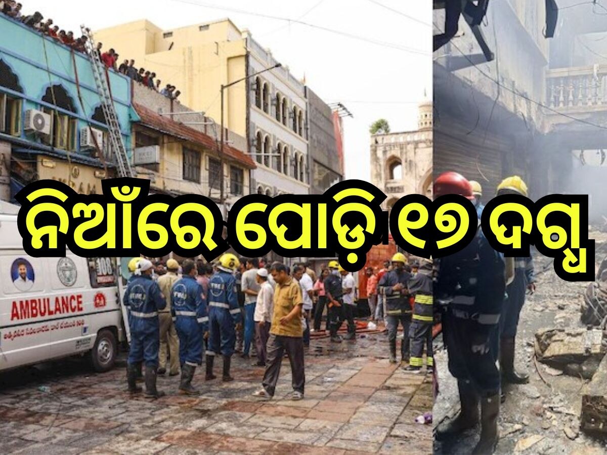 Fire: ଏ-ମିତି ବି ଆସେ ମୃତ୍ୟୁ। କେହି କିଛି ଭାବିବା ପୂର୍ବରୁ ଓଲଟ ପାଲଟ ହୋଇଗଲା ସବୁ କିଛି। କ୍ଷଣିକ ମଧ୍ୟରେ ଚୁନା ହୋଇଗଲା ସବୁ ସ୍ବପ୍ନ। ଭୟଙ୍କର ଅଗ୍ନିକାଣ୍ତରେ ଚାଲିଗଲା ୧୭ ଜୀବନ। ଏକାଧିକ ଆହତ ହୋଇଥିବା ଜଣାପଡିଛି। ଆହତଙ୍କୁ ଉଦ୍ଧାର କରାଯାଇ ସ୍ଥାନୀୟ ମେଡିକାଲ୍ ରେ ଭର୍ତ୍ତି କରାଯାଇଛି। ଅଗ୍ନିକାଣ୍ତର କାରଣ ଏପର୍ଯ୍ୟନ୍ତ ଜଣାପଡି ନାହିଁ। କେଉଁ ପରିସ୍ଥିତିରେ ନିଆଁ ଲାଗିଲା ତାହା ଜଣାପଡି ନାହିଁ। ଘଟଣାସ୍ଥଳରେ ଅଗ୍ନିଶମ ବାହିନୀ ପହଞ୍ଚି ନିଆଁ ଲିଭା କାର୍ଯ୍ୟ ଜାରି ରଖିଛି। ହାଇଦ୍ରାବାଦର ଚାରମିନାର ନିକଟରେ ଥିବା ଗୁଲଜାର ହାଉସରେ ଏହି ଭୟଙ୍କର ଅଗ୍ନିକାଣ୍ତ ଘଟିଛି।
