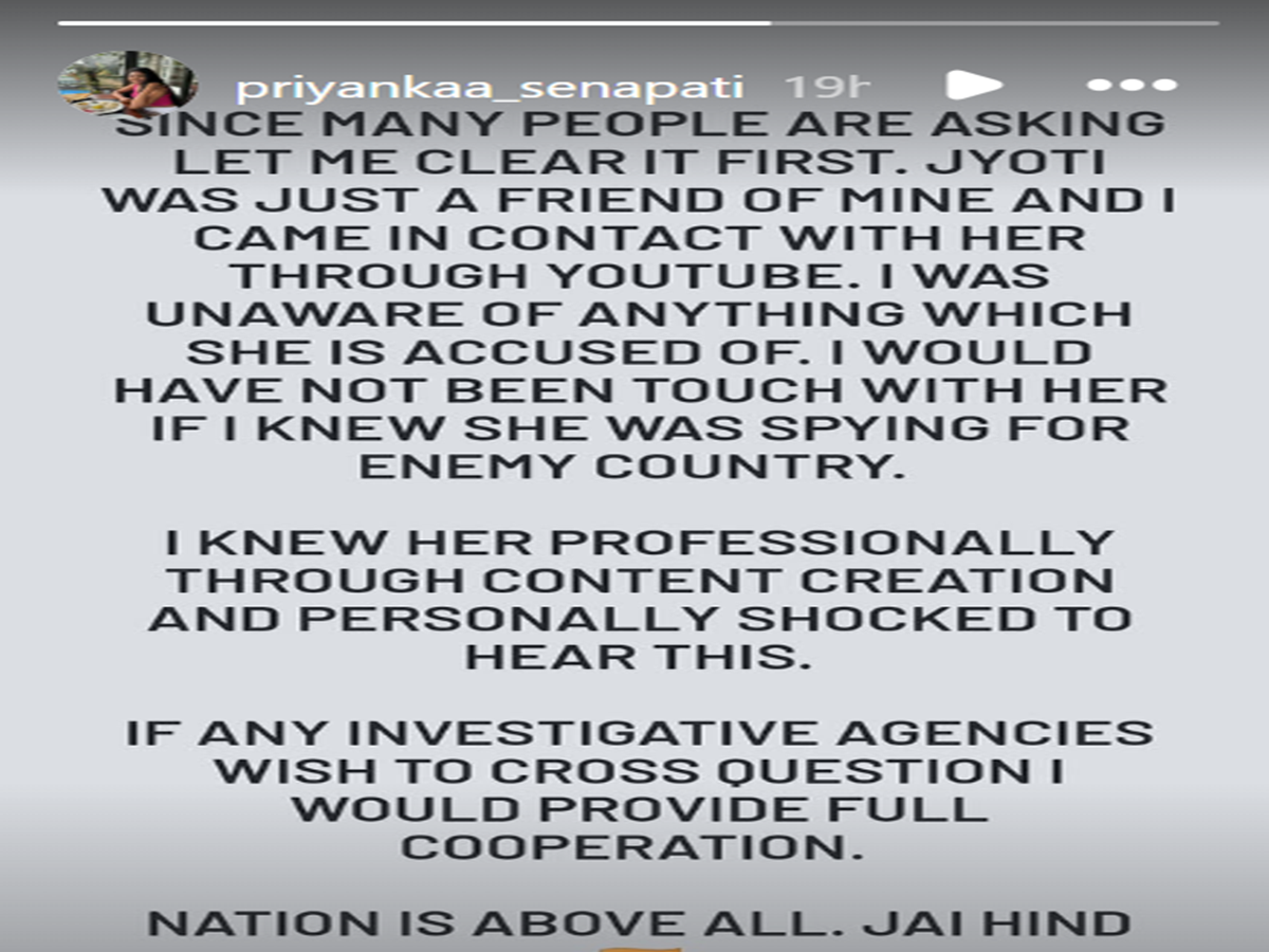 ପ୍ରିୟଙ୍କାଙ୍କ ସହ ଜ୍ୟୋତି ଙ୍କର ଥିଲା ବନ୍ଧୁତା । ସୋସିଆଲ ମିଡିଆରେ ଉଭୟଙ୍କର ଏକାଧିକ ଫଟୋ ରହିଛି । ପହଲଗାମ ରେ ଉଭୟଙ୍କ ଭିଡିଓ ଭାଇରାଲ୍ ହେବାରେ ଲାଗିଛି । ତଦନ୍ତରେ ସହଯୋଗ କରିବୁ କହିଛନ୍ତି ପ୍ରିୟଙ୍କାଙ୍କ ବାପା ।