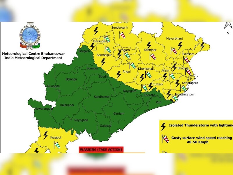 ୟେଲୋ ଆଲର୍ଟ ଜାରି ହୋଇଥିବା ଜିଲ୍ଲାରେ ବିଜୁଳି ଘଡ଼ଘଡ଼ି ସହ ପ୍ରବଳ ବର୍ଷା ସହ ୪୦-୫୦ କିମି ବେଗରେ ପବନ ବହିବା ନେଇ ବିଭାଗ ତରଫରୁ ଆଲର୍ଟ ଜାରି କରାଯାଇଛି।
