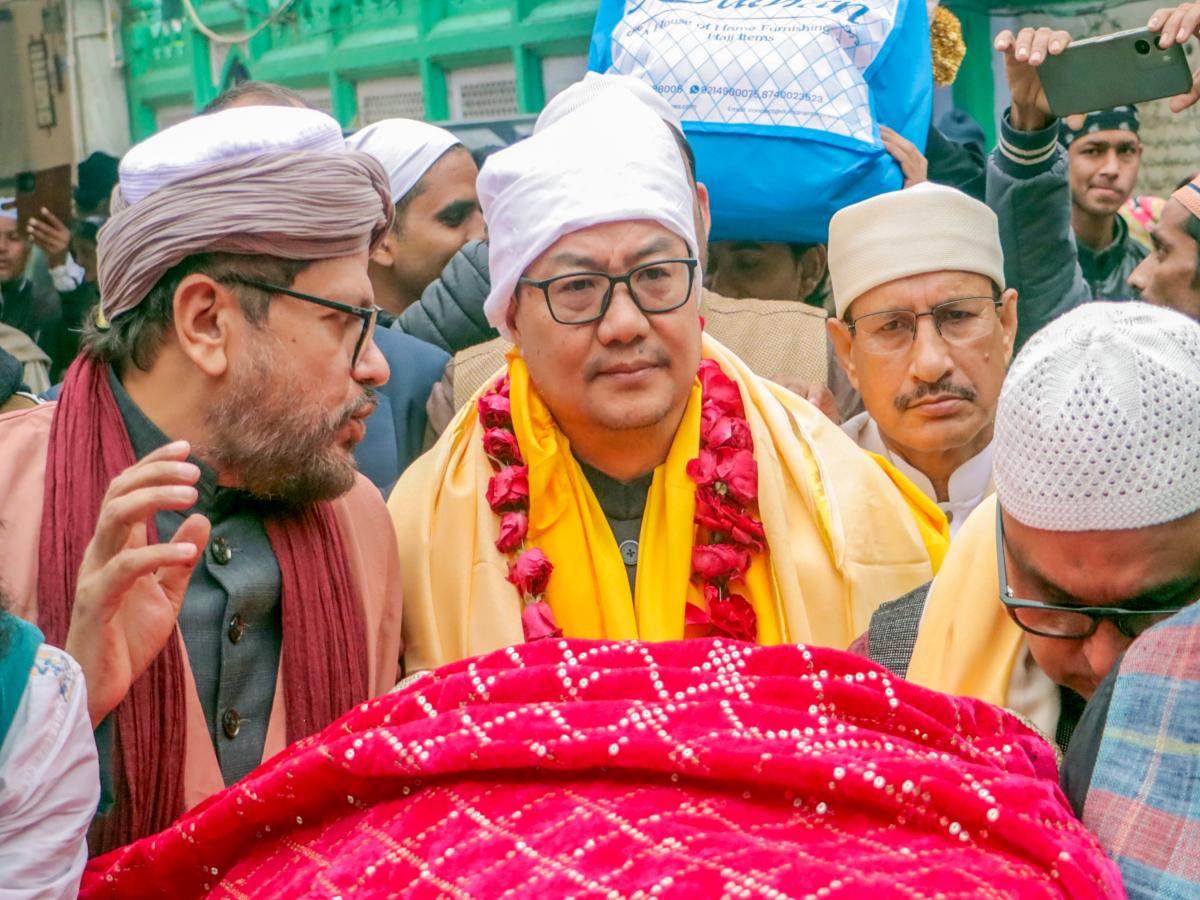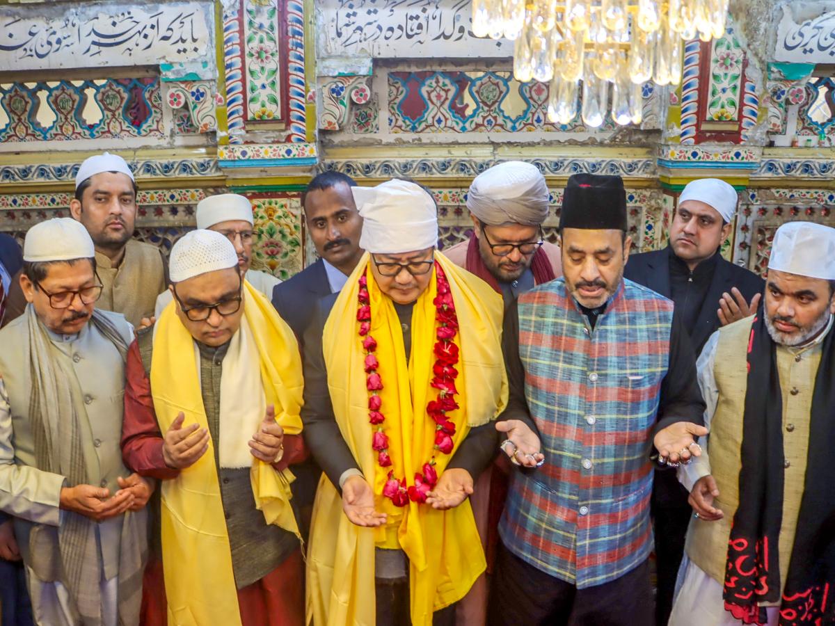 प्रधानमंत्री नरेंद्र मोदी द्वारा अजमेर के ख्वाजा गरीब नवाज की दरगाह के लिए भेजी गई चादर को केंद्रीय मंत्री किरेन रिजिजू शुक्रवार की सुबह निजामुद्दीन दरगाह लेकर पहुंचे थे, जहाँ दरगाह कमेटी के लोगों ने उनका इस्तकबाल किया. निजामुद्दीन दरगाह पर हाजिरी लगाने के बाद संसदीय कार्य मंत्री और अल्पसंख्यक मामलों के मंत्री किरेन रिजिजू ने वहां मौजूद पत्रकारों से बात करते हुए कहा, "पीएम मोदी ने ख्वाजा गरीब नवाज के उर्स के लिए चादर भेजी है, और उसे ही लेकर आज हम निजामुद्दीन दरगाह आए हैं. यहां से इज़ाज़त लेकर अजमेर के लिए रवाना होंगे. मैंने दरगाह में सभी लोगों से मुलाकात की और देश की तरक्की और खुशहाली के लिए दुआ मांगी है." मंत्री किरेन रिजिजू ने आगे कहा, "प्रधानमंत्री मोदी का पैगाम है कि मुल्क में भाईचारा और अमन-चैन बना रहे. यही पैगाम लेकर आज हम अजमेर के लिए रवाना हो रहे है. यह देश में वर्षों से चली आ रही एक पुरानी परंपरा है, जिसके लिए हमलोग यहां आए हैं. पीएम मोदी द्वारा भेजी गई चादर को शनिवार को अजमेर के दरगाह में पेश किया जाएगा."