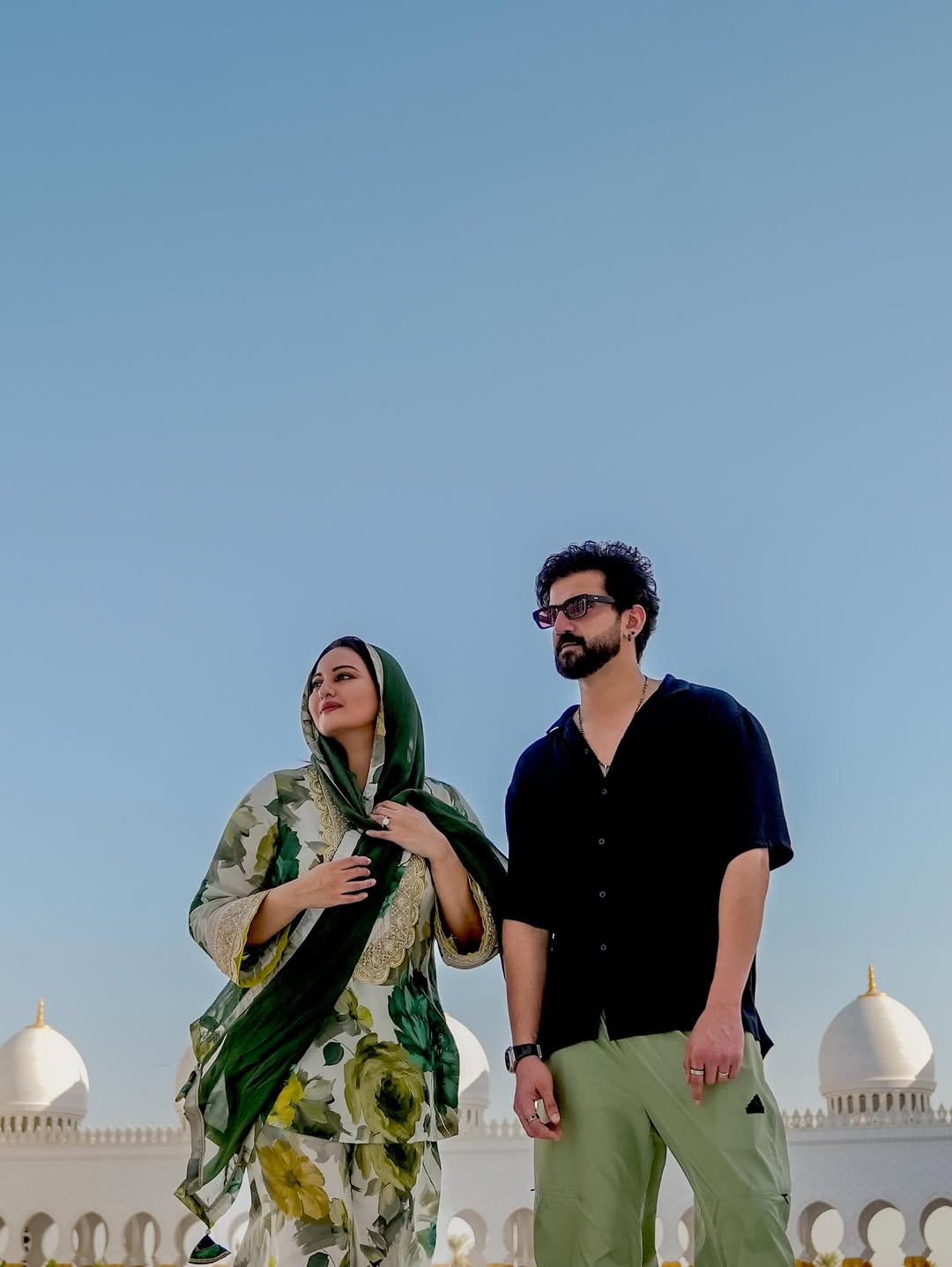 इन तस्वीरों में वह अपने पति ज़हीर के साथ अबू धाबी की मशहूर मस्जिद में घूमते हुए नजर आ रही हैं.