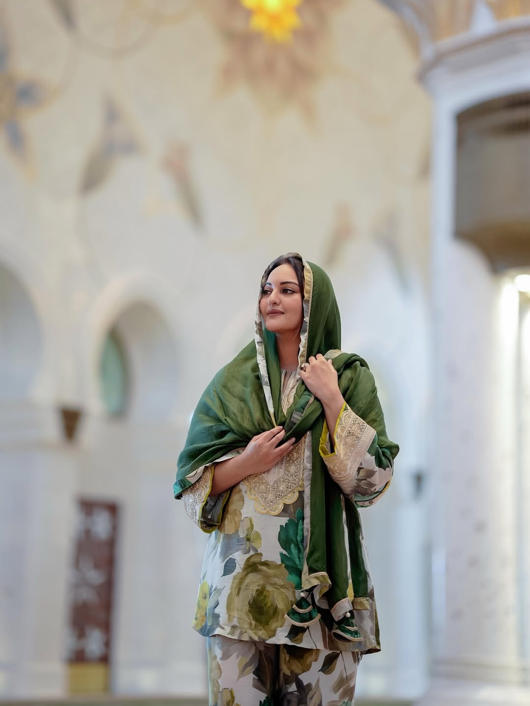 सोनाक्षी ने हरे रंग के दुपट्टे से अपना सिर ढका हुआ है. इसी बात से उन्हें लगातार ट्रोल किया जा रहा है.