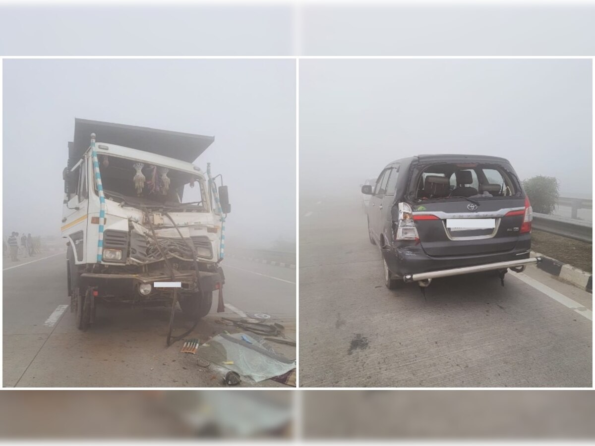 नई दिल्ली: ईस्टर्न पेरीफेरल हाईवे आधा दर्जन से ज्यादा वाहन एक एक करके आपस में टकरा गए. बताया जाता है कि धुंध की वजह से ये वाहन आपस में टकरा गए. यह हादसा ग्रेटर नोएडा के दनकौर थाना क्षेत्र के ईस्टर्न पेरिफेरल में पेश आया. दिवाली के बाद दिल्ली और इसके आस-पास के इलाकों में घना धुंआ छाया हुआ है.
