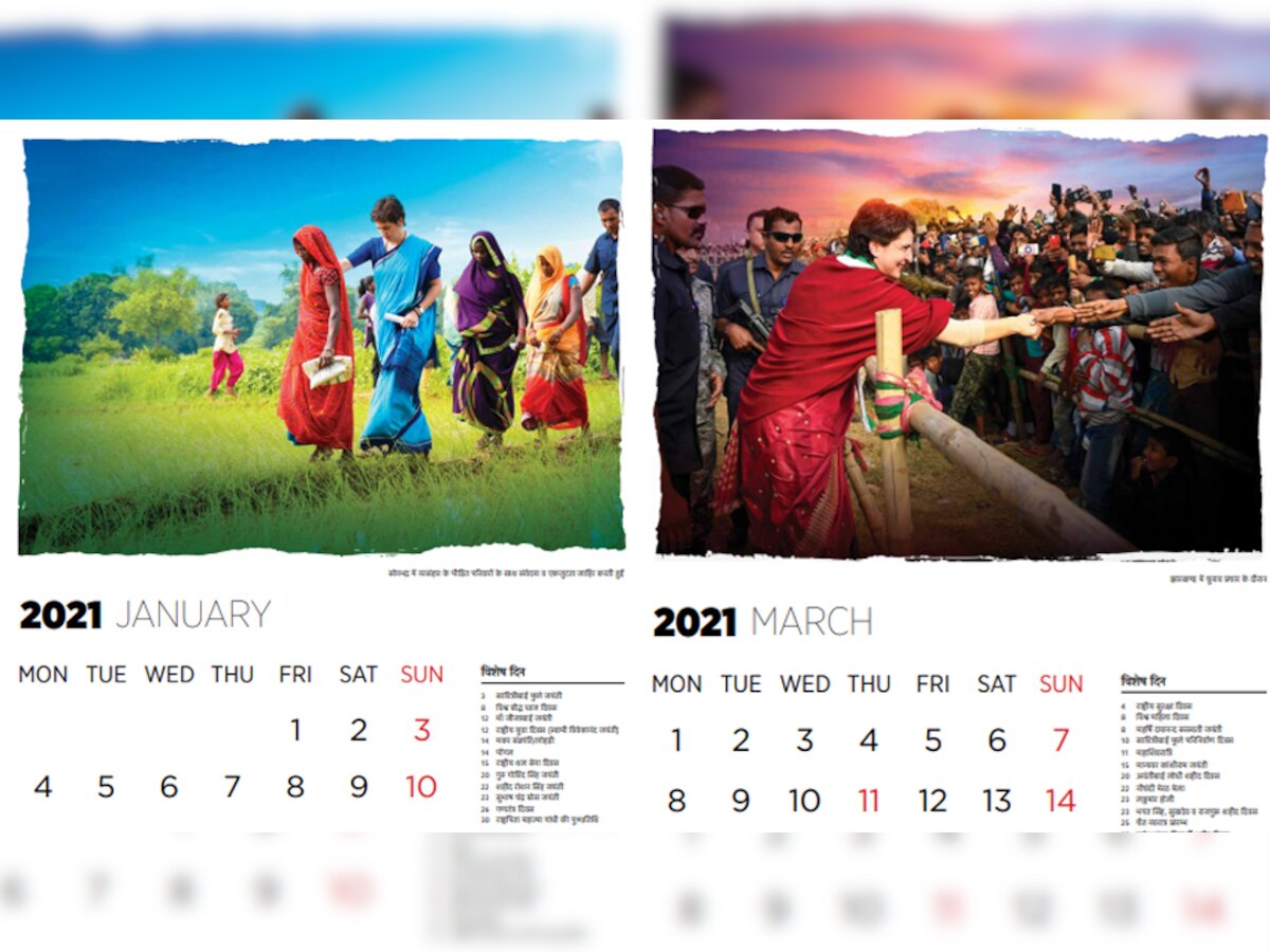 कैलेंडर में प्रियंका के जनसंपर्क और संघर्षों की तस्वीरें
