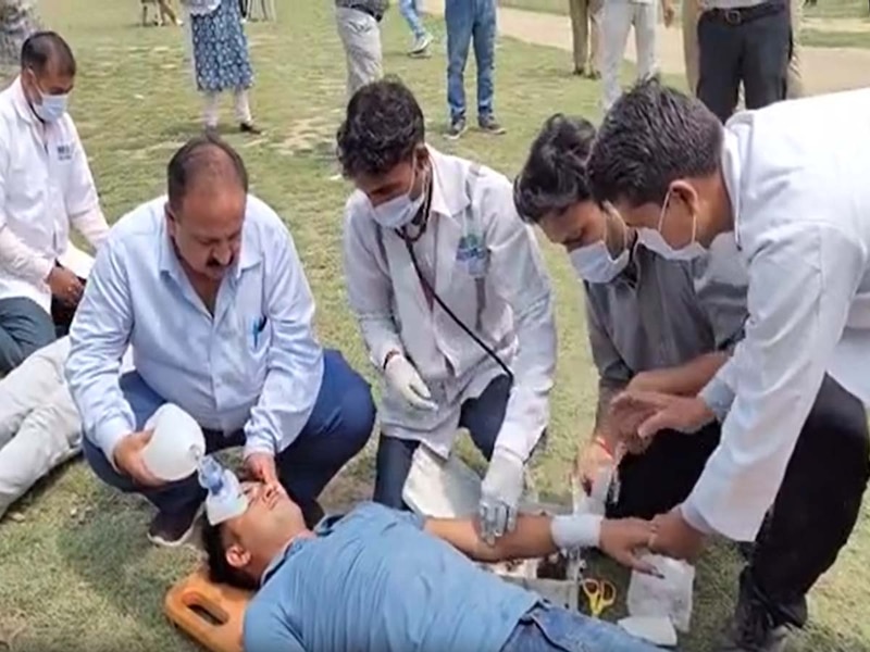 मऊ: नगर में आपदा प्रबंधन की तैयारियों को परखने के लिए पुलिस लाइन में बड़े स्तर पर मॉक ड्रिल का आयोजन किया गया. यह अभ्यास नगर के डीसीएसके कॉलेज तथा पुलिस लाइन के मैदान में किया गया, जहां विभिन्न आपातकालीन एजेंसियों ने आपदा की स्थिति में त्वरित प्रतिक्रिया देने का प्रदर्शन किया.