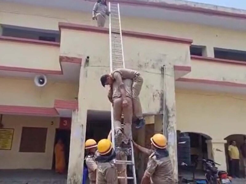 लखनऊ: लखनऊ में मंगलवार, 06 मई, 2025 को राष्ट्रव्यापी मॉक ड्रिल से पहले नागरिक सुरक्षा द्वारा रिजर्व पुलिस लाइन्स में आयोजित मॉक ड्रिल की तैयारी के दौरान एक व्यक्ति दूसरे को अपनी पीठ पर उठाए हुए है.