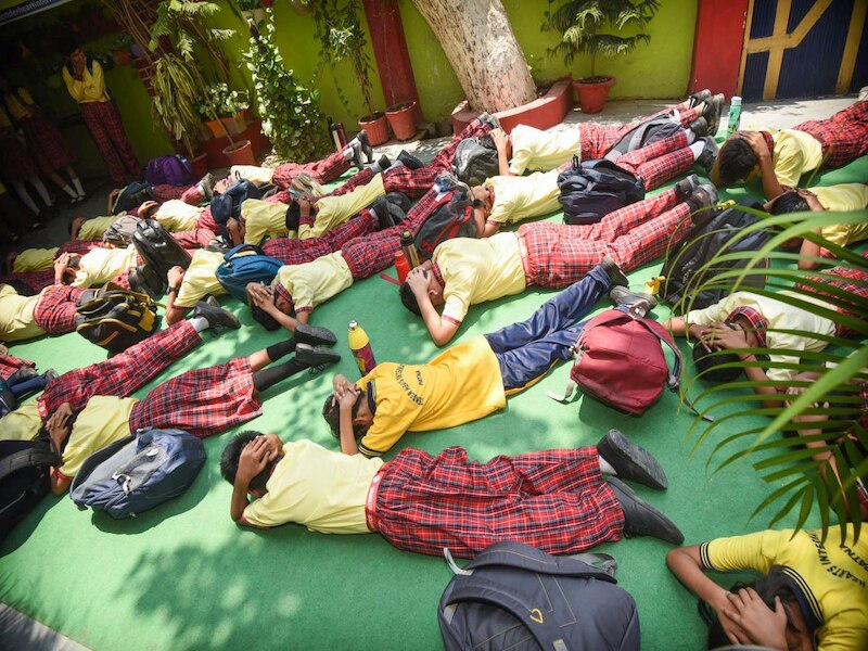 पटना: बुधवार को पटना में राष्ट्रव्यापी नागरिक सुरक्षा मॉक ड्रिल में हिस्सा लेते स्कूली छात्र.