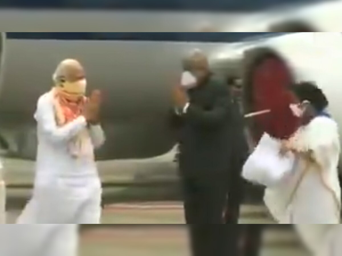 PM Narendra Modi received by West Bengal CM Mamata Banerjee and Governor Jagdeep Dhankhar on arrival at Kolkata Airport. The PM will be conducting an aerial survey of the areas affected by #CycloneAmphan. pic.twitter.com/efrNAog2Sd