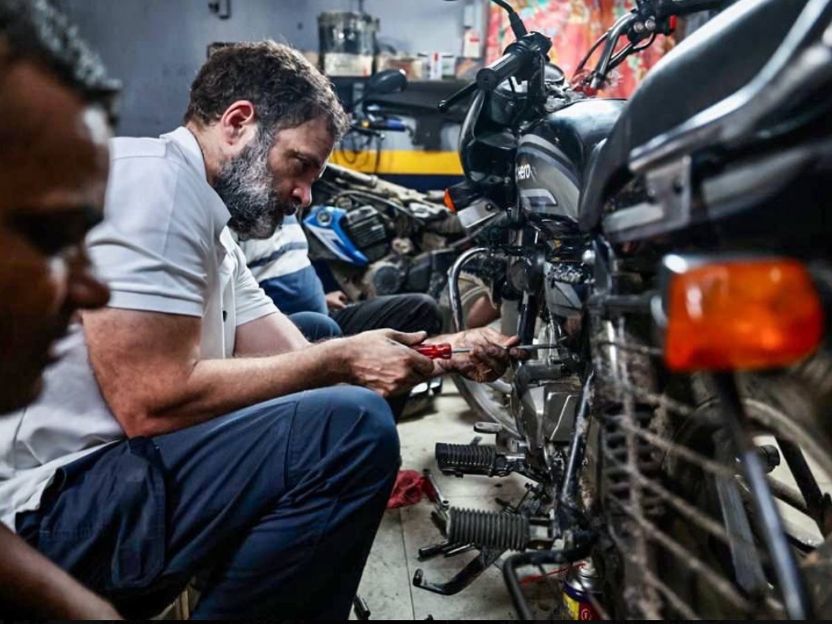 फोटोज में राहुल गांधी बाइक मकैनिक से बातचीत करते दिख रहे हैं वहीं दूसरे फोटो में वह पेचकस पकड़कर बाइक को सुधारते हुए नजर आ रहे हैं. ये फोटो दिल्ली के करोल बाग़ इलाके के हैं.