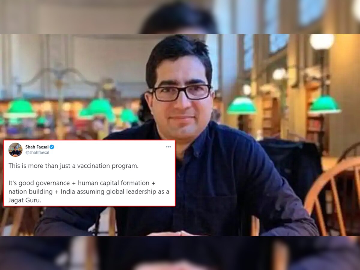 पूर्व IAS शाह फैसल ने प्रधानमंत्री नरेंद्र मोदी के एक ट्वीट को रिट्वीट करते हुए कोविड वैक्सीनेशन के प्रोग्राम की जमकर तारीफ की है. उन्होंने अपने ट्वीट में लिखा, "यह सिर्फ एक वैक्सीनेशन प्रोग्राम से कहीं ज्यादा बढ़कर है. यह अच्छे शासन, मानव संपदा निर्माण, राष्ट्र निर्माण के साथ भारत के विश्व गुरु बनने की दिशा तय करने वाला है."