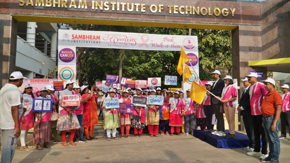 ಬೆಂಗಳೂರು : ಅಂತರಾಷ್ಟ್ರೀಯ ಮಹಿಳಾ ದಿನಾಚರಣೆ ಅಂಗವಾಗಿ ಮಹಿಳೆಯರ ಆರೋಗ್ಯದ ಕುರಿತು ವಿಶೇಷವಾಗಿ ಸ್ತನ ಕ್ಯಾನ್ಸರ್ ಕುರಿತು ಜಾಗೃತಿ ಮೂಡಿಸಲು ಸಂಭ್ರಮ ಶಿಕ್ಷಣ ಸಂಸ್ಥೆ ಮತ್ತು ಇಂಡಿಯನ್ ಕ್ಯಾನ್ಸರ್ ಸೊಸೈಟಿ ವತಿಯಿಂದ 'ಪಿಂಕ್ ವಾಕಥಾನ್' ಕಾಲ್ನಡಿಗೆ ಜಾಥಾ ನಡೆಸಲಾಯಿತು.