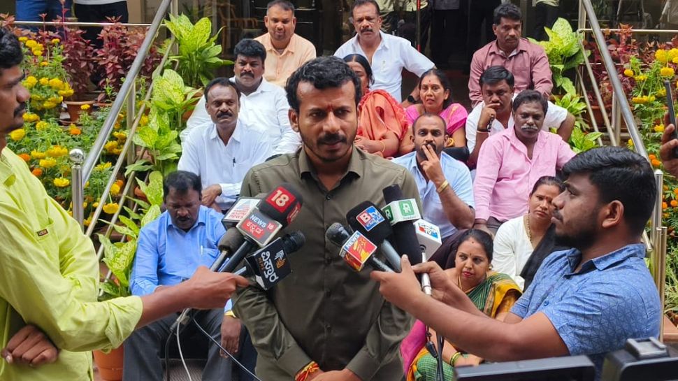 ವಿಜಯ್ ತಾತಾ ವಿರುದ್ಧ ನಾನು ದೂರು ಕೊಟ್ಟಿದ್ದರೂ ಎಫ್ಐಆರ್ ಮಾಡದಿರುವ ಪೊಲೀಸರ ಕ್ರಮ ಖಂಡಿಸಿ ರಮೇಶ್ ಗೌಡ ಮತ್ತಿತರೆ ಮುಖಂಡರು ನಗರ ಪೊಲೀಸ್ ಆಯುಕ್ತರ ಕಚೇರಿ ಎದುರು ಧರಣಿ ನಡೆಸಿದರು.
