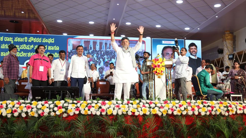 ಬೆಂಗಳೂರು: ಓಪಿಎಸ್ ಜಾರಿ ವಿಚಾರವಾಗಿ ಡಿಸಿಎಂ ಭರವಸೆ ನೀಡಿದಾಗ ನೌಕರರು "ಡಿಕೆ, ಡಿಕೆ" ಎಂದು ಘೋಷಣೆ ಕೂಗಿದರು. ಆಗ ಸಭಿಕರಿಗೆ ಸುಮ್ಮನಿರಲು ಹೇಳಿದ ಡಿಸಿಎಂ ಡಿ.ಕೆ. ಶಿವಕುಮಾರ್ ಅವರು, "ನಾನು ಮುಂದಿನ ಬಾರಿ ಚುನಾವಣೆಗೆ ನಿಂತಾಗ, ನನ್ನ ನಾಯಕತ್ವದಲ್ಲಿ ನಡೆದಾಗ ದಯವಿಟ್ಟು ಈ ಪದವನ್ನು ಉಪಯೋಗಿಸಿ. ನಾನು ವಿಧಾನಸೌಧದಲ್ಲಿ ಇರುವವನೇ. ನಾನು ಇನ್ನು ಎಂಟತ್ತು ವರ್ಷ ಬಿಟ್ಟು ಹೋಗುವುದಿಲ್ಲ. ನನ್ನ ಆರೋಗ್ಯ ಇನ್ನೂ ಗಟ್ಟಿಯಾಗಿದೆ. ನನ್ನ ಮೇಲೆ ನಂಬಿಕೆಯಿಡಿ" ಎಂದು ಮಾರ್ಮಿಕವಾಗಿ ಹೇಳಿದರು.