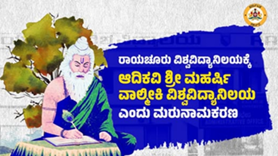 ಬೆಂಗಳೂರು: ರಾಯಚೂರು ವಿಶ್ವವಿದ್ಯಾನಿಲಯವನ್ನು ಈಗ ಆದಿಕವಿ ಶ್ರೀ ಮಹರ್ಷಿ ವಾಲ್ಮೀಕಿ ವಿಶ್ವವಿದ್ಯಾನಿಲಯ ಎಂದು ಮರುನಾಮಕರಣಗೊಳಿಸಲಾಗಿದೆ.
