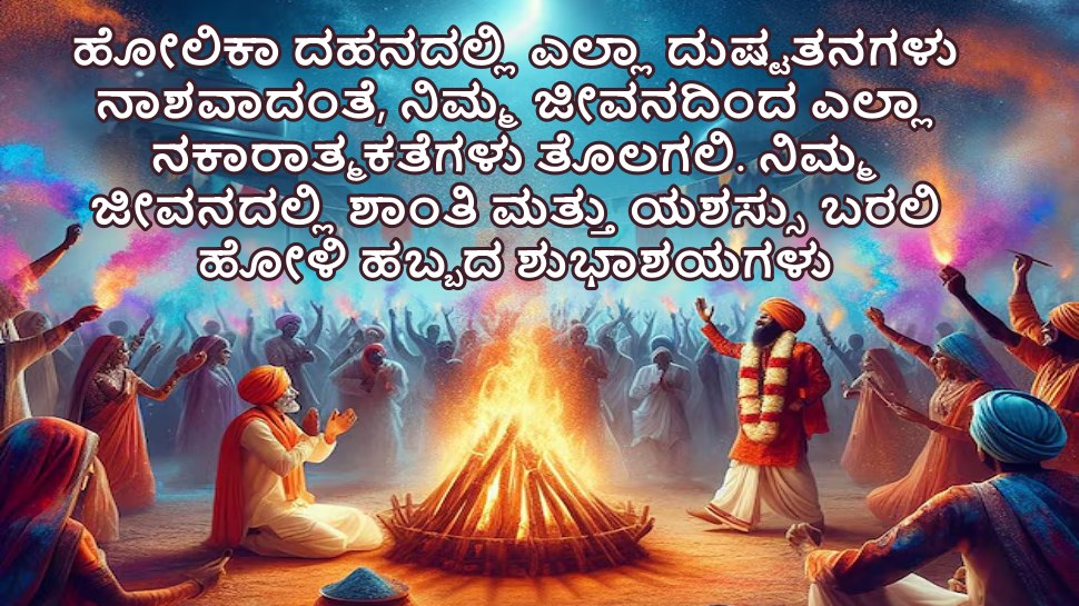 ಹೋಲಿಕಾ ದಹನದಲ್ಲಿ ಎಲ್ಲಾ ದುಷ್ಟತನಗಳು ನಾಶವಾದಂತೆ, ನಿಮ್ಮ ಜೀವನದಿಂದ ಎಲ್ಲಾ ನಕಾರಾತ್ಮಕತೆಗಳು ತೊಲಗಲಿ. ನಿಮ್ಮ ಜೀವನದಲ್ಲಿ ಶಾಂತಿ ಮತ್ತು ಯಶಸ್ಸು ಬರಲಿ.ಹೋಳಿ ಹಬ್ಬದ ಶುಭಾಶಯಗಳು