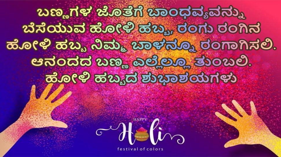 ಬಣ್ಣಗಳ ಜೊತೆಗೆ ಬಾಂಧವ್ಯವನ್ನು ಬೆಸೆಯುವ ಹೋಳಿ ಹಬ್ಬ, ರಂಗು ರಂಗಿನ ಹೋಳಿ ಹಬ್ಬ ನಿಮ್ಮ ಬಾಳನ್ನೂ ರಂಗಾಗಿಸಲಿ. ಆನಂದದ ಬಣ್ಣ ಎಲ್ಲೆಲ್ಲೂ ತುಂಬಲಿ. ಹೋಳಿ ಹಬ್ಬದ ಶುಭಾಶಯಗಳು..