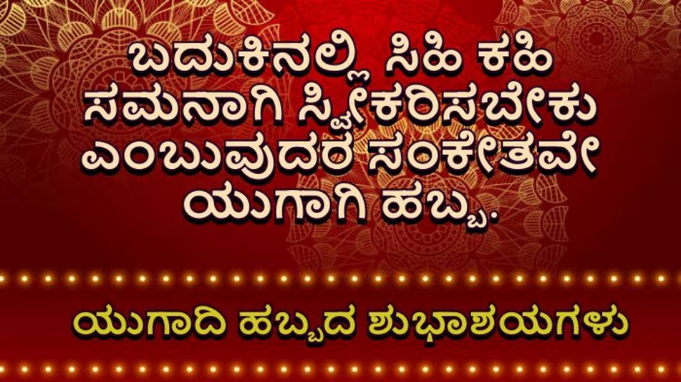 ಯುಗಾದಿ ನಿಮ್ಮ ಬಾಳಲ್ಲಿ ಶಾಂತಿ, ಸಮೃದ್ಧಿ ಮತ್ತು ಸಂತೋಷವನ್ನು ತರಲಿ. ಯುಗಾದಿ ಹಬ್ಬದ ಶುಭಾಶಯಗಳು