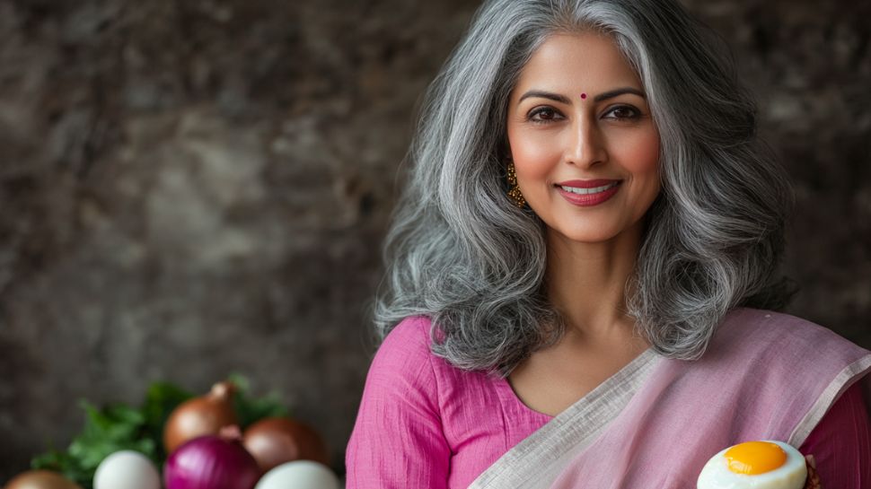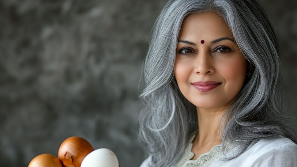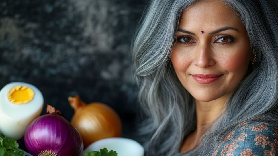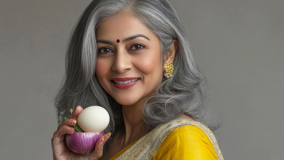 ಈರುಳ್ಳಿ, ಮೊಟ್ಟೆಯಿಂದ ತಯಾರಿಸಿದ ಈ ಹೇರ್ ಡೈ ಮಿಶ್ರಣವನ್ನು ಕೂದಲಿಗೆ ಹಚ್ಚಿ ಅರ್ಧಗಂಟೆ ಬಳಿಕ ಹೇರ್ ವಾಶ್ ಮಾಡುವುದರಿಂದ ಬಿಳಿ ಕೂದಲು ಸುಲಭವಾಗಿ ಕಪ್ಪಾಗುತ್ತದೆ. ಜೊತೆಗೆ ಕಾಂತಿಯುತವೂ ಆಗುತ್ತದೆ.