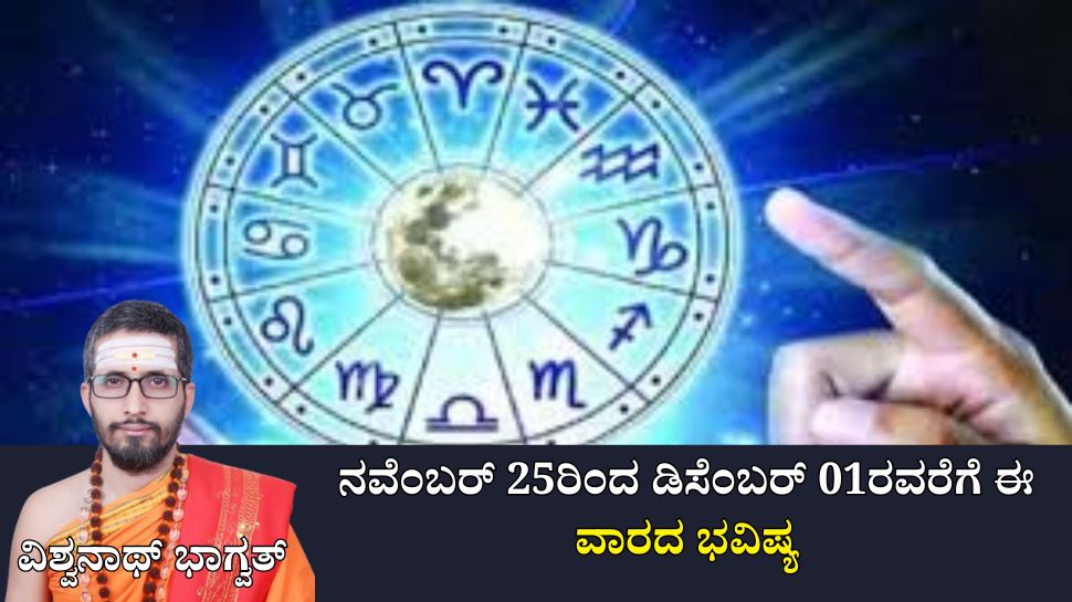 Varabhavishya in Kannada From November 25th to December 01st: ಕೊನೆಯ ಕಾರ್ತಿಕ ಸೋಮವಾರದಿಂದ ಪ್ರಾರಂಭವಾಗುವ ಈ ವಾರ ಕೆಲವು ಗ್ರಹಗಳ ಸ್ಥಾನದಲ್ಲಿನ ಬದಲಾವಣೆಯಿಂದಾಗಿ ಕೆಲವು ರಾಶಿಯವರಿಗೆ ಭಾರೀ ಅದೃಷ್ಟವನ್ನು ತರುತ್ತದೆ. ಇದೇ ವೇಳೆ ಕೆಲ ರಾಶಿಯ ಜನರು ಎಚ್ಚರಿಕೆಯಿಂದ ಇರಬೇಕಾಗುತ್ತದೆ. ಈ ವಾರ ಯಾವ ರಾಶಿಯವರ ಭವಿಷ್ಯ ಹೇಗಿದೆ ತಿಳಿಯಿರಿ.