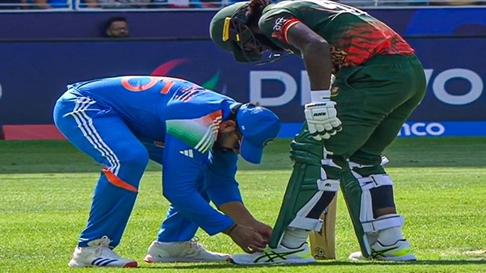 ಟೀಮ್ ಇಂಡಿಯಾ ಮತ್ತು ಬಾಂಗ್ಲಾದೇಶ ನಡುವಿನ ಚಾಂಪಿಯನ್ಸ್ ಟ್ರೋಫಿ ಪಂದ್ಯ ಪ್ರಸ್ತುತ ದುಬೈನಲ್ಲಿ ನಡೆಯುತ್ತಿದೆ. ಈ ಪಂದ್ಯದಲ್ಲಿ ಟಾಸ್ ಗೆದ್ದು ಮೊದಲು ಬೌಲಿಂಗ್ ಆಯ್ಕೆ ಮಾಡಿಕೊಂಡ ಟೀಂ ಇಂಡಿಯಾ, ಬಾಂಗ್ಲಾದೇಶದ ಬ್ಯಾಟ್ಸ್ಮನ್ಗಳ ಮೇಲೆ ಪ್ರಾಬಲ್ಯ ಪ್ರದರ್ಶಿಸಲು ಪ್ರಯತ್ನಿಸುತ್ತಿದೆ. ಇದರೊಂದಿಗೆ ಬಾಂಗ್ಲಾದೇಶ ಕೇವಲ 10 ಓವರ್ಗಳಲ್ಲಿ ಐದು ವಿಕೆಟ್ಗಳನ್ನು ಕಳೆದುಕೊಂಡು ತೀವ್ರ ಸಂಕಷ್ಟಕ್ಕೆ ಸಿಲುಕಿತು. ಈ ಸಂದರ್ಭದಲ್ಲಿ ಭಾರತ ತಂಡದ ನಾಯಕ ರೋಹಿತ್ ಶರ್ಮಾ ತಮ್ಮ ಕ್ರೀಡಾ ಮನೋಭಾವವನ್ನು ಪ್ರದರ್ಶಿಸಿದರು. ಕ್ರೀಸ್ನಲ್ಲಿ ಬ್ಯಾಟಿಂಗ್ ಮಾಡುತ್ತಿದ್ದ ಎದುರಾಳಿ ತಂಡದ ಬ್ಯಾಟ್ಸ್ಮನ್ ಜಾಕಿರ್ ಅಲಿ ತಮ್ಮ ಶೂಲೇಸ್ ಅನ್ನು ಕಳೆದುಕೊಂಡು ಅದನ್ನು ಕಟ್ಟಲು ಹೋದರು.