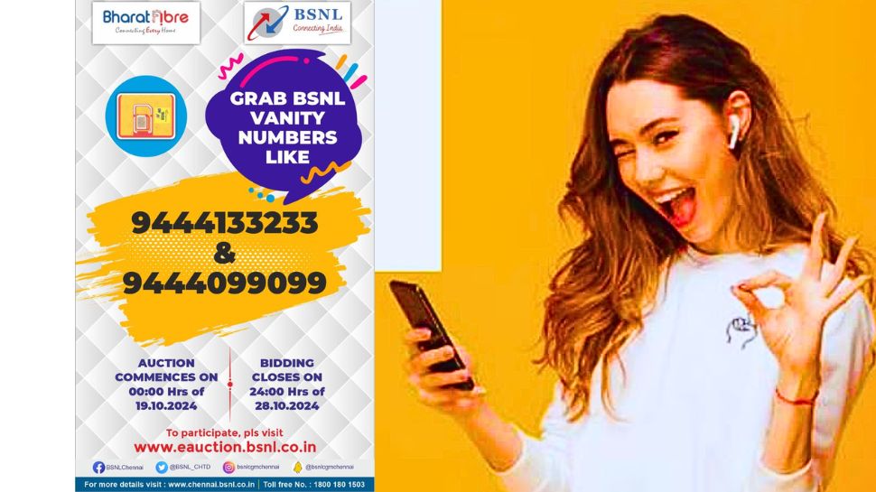 ನೀವೂ ಸಹ ಬಿಎಸ್ಎನ್ಎಲ್ ನ ಫ್ಯಾನ್ಸಿ ನಂಬರ್ ನೀಡಲು ಬಯಸಿದರೆ ಇ-ಹರಾಜಿನಲ್ಲಿ ಭಾಗವಹಿಸುವ ಮೂಲಕ ನಿಮ್ಮ ಸಂಖ್ಯೆಯನ್ನು ಬುಕ್ ಮಾಡಬಹುದು. ಆದಾಗ್ಯೂ, ಇದಕ್ಕಾಗಿ ಬಿಎಸ್ಎನ್ಎಲ್ ಕೆಲವು ನಿಯಮ ಮತ್ತು ಷರತ್ತುಗಳನ್ನು ಪೂರ್ಣಗೊಳಿಸಬೇಕಾಗುತ್ತದೆ. ಬಿಎಸ್ಎನ್ಎಲ್ ಚೆನ್ನೈ ತನ್ನ ಸಾಮಾಜಿಕ ಮಾಧ್ಯಮ ಹ್ಯಾಂಡಲ್ ಮೂಲಕ ಈ ಮಾಹಿತಿಯನ್ನು ಹಂಚಿಕೊಂಡಿದೆ.