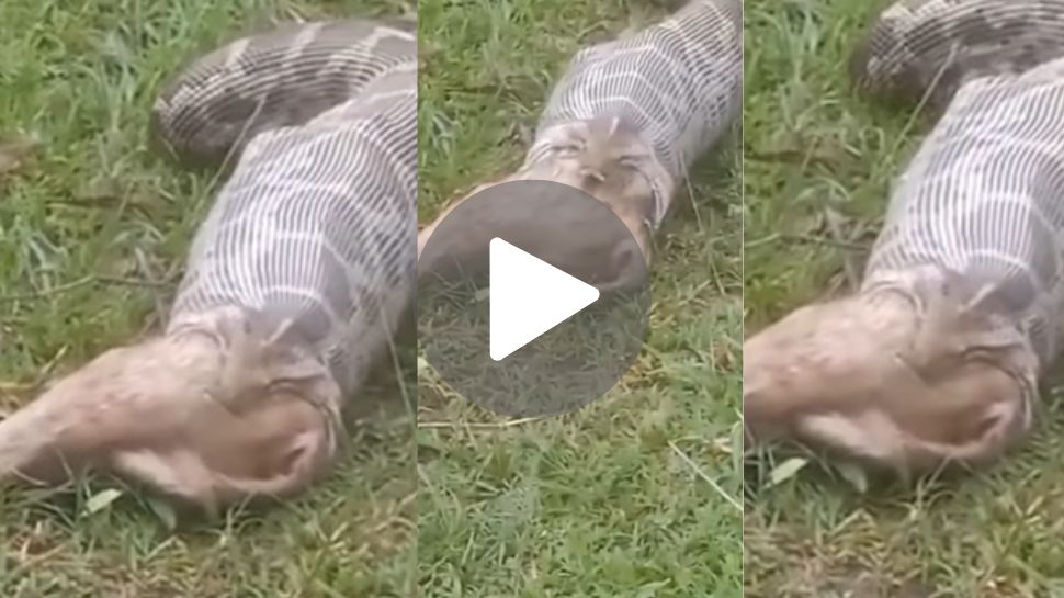Python Video Viral: ಹೆಬ್ಬಾವು.. ಗಾತ್ರದಲ್ಲಿ ಮಾತ್ರವಲ್ಲ.. ಅತ್ಯಂತ ಬಲಿಷ್ಠ ಸರೀಸೃಪವೂ ಆಗಿದೆ. ಇದು ಪ್ರಾಣಿಗಳನ್ನು ಹಾಗೂ ಮನುಷ್ಯರನ್ನು ಸಂಪೂರ್ಣವಾಗಿ ನುಂಗುತ್ತದೆ. ಮತ್ತು ಪ್ರಾಣಿಗಳಿಗೆ ಸಂಬಂಧಿಸಿದ ವೀಡಿಯೊಗಳು ಸಾಮಾಜಿಕ ಮಾಧ್ಯಮದಲ್ಲಿ ವೈರಲ್ ಆಗುತ್ತಿವೆ. ಸಾವು ಬದುಕಿನ ನಡುವೆ ಬದುಕುವ ಈ ಪ್ರಾಣಿ ಜಗತ್ತು.. ಪ್ರತಿದಿನ ಮರಣದಂಡನೆ ಶಿಕ್ಷೆಗೆ ಗುರಿಯಾಗುತ್ತಿದೆ. ಇತ್ತೀಚೆಗೆ, ಹೆಬ್ಬಾವಿಗೆ ಸಂಬಂಧಿಸಿದ ವೀಡಿಯೊ ಸಿಕ್ಕಾಪಟ್ಟೆ ವೈರಲ್ ಆಗುತ್ತಿದೆ. ಈ ವೀಡಿಯೊ ಜಾರ್ಖಂಡ್ನ ಬಲೇದಿಹಾ ಗ್ರಾಮದ್ದು. ಅದರಲ್ಲಿ, ದೊಡ್ಡ ಹೆಬ್ಬಾವು ಊದಿಕೊಂಡ ಹೊಟ್ಟೆಯೊಂದಿಗೆ ಹೋರಾಡುತ್ತಿರುವುದು, ಮುಂದೆ ತೆವಳಲಾರದೆ ಕಷ್ಟ ಪಡುತ್ತಿರುವುದು ಕಂಡು ಬಂದಿದೆ. ನೀವು ಅದರ ಬಾಯಿಯಲ್ಲಿ ನರಿಯ ಶವವನ್ನು ಸಹ ನೋಡಬಹುದು. ನರಿಯ ಶವದ ಅರ್ಧವನ್ನು ನುಂಗಿದ ಹೆಬ್ಬಾವು, ನಂತರ ಉಳಿದದ್ದನ್ನು ನುಂಗಲು ಕಷ್ಟಪಡುತ್ತಿದೆ. ಅದನ್ನು ನುಂಗುವಲ್ಲಿ ಅದರ ಸ್ಥಿತಿ ತುಂಬಾ ಕೆಟ್ಟದಾಗಿದೆ ಎಂದು ಹೇಳಬಹುದು.