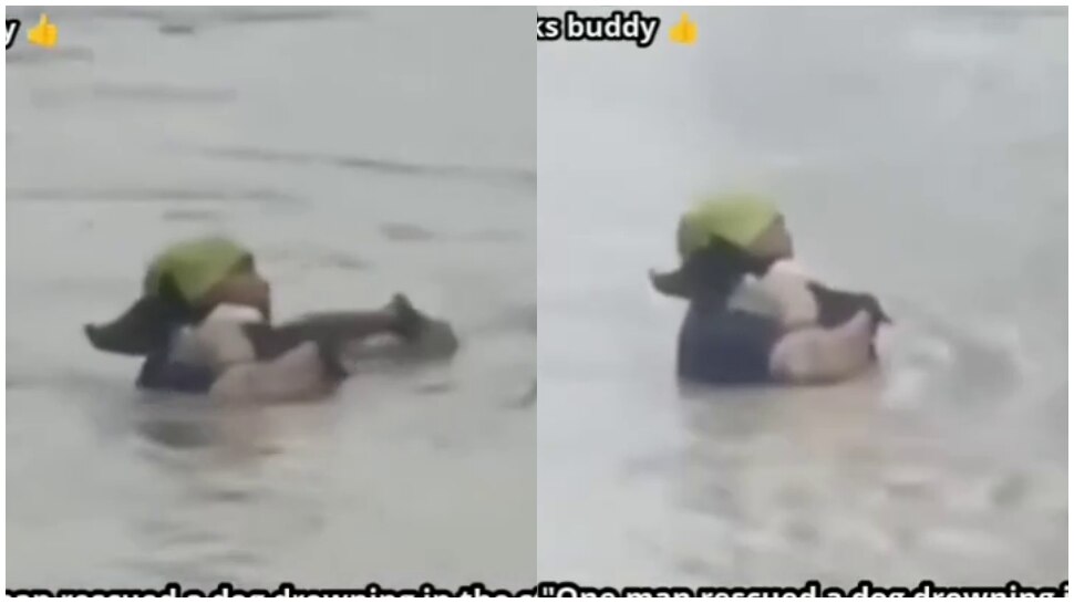 ಅಂತರ್ಜಾಲದಲ್ಲಿ ವೈರಲ್ ಆಗುತ್ತಿರುವ ಈ ವೀಡಿಯೊದಲ್ಲಿ, ಮಳೆಯಲ್ಲಿ ಸಿಲುಕಿಕೊಂಡ ನಾಯಿ ನೀರಿನಲ್ಲಿ ಕೊಚ್ಚಿ ಹೋಗುತ್ತಿರುವುದನ್ನು ಕಾಣಬಹುದು. ಪ್ರವಾಹದಲ್ಲಿ ನಾಯಿ ತನ್ನ ಪ್ರಾಣ ಉಳಿಸಿಕೊಳ್ಳಲು ಶತ ಪ್ರಯತ್ನ ಮಾಡುತ್ತಿದೆ. ಇದನ್ನು ನೋಡಿದ ವ್ಯಕ್ತಿಯೊಬ್ಬ ತಕ್ಷಣ ನೀರಿಗೆ ಹಾರಿ ನಾಯಿಯನ್ನು ಉಳಿಸಲು ಪ್ರಯತ್ನಿಸಿದ. ಕುತ್ತಿಗೆಯವರೆಗೆ ನೀರಿನಲ್ಲಿ ಈಜುತ್ತಿದ್ದ ಕಷ್ಟಪಟ್ಟು ನಾಯಿಯನ್ನು ರಕ್ಷಿಸಿದರು.