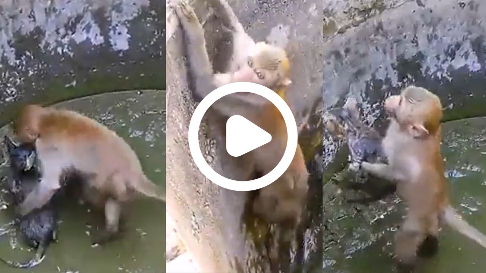 ವೈರಲ್ ಆಗುತ್ತಿರುವ ಈ ವಿಡಿಯೋದಲ್ಲಿ ಬೆಕ್ಕೊಂದು ಆಯಾ ತಪ್ಪಿ ಬಾವಿಗೆ ಬಿದ್ದಿರುವುದನ್ನು ನಾವು ನೋಡಬಹುದು. ಬಾವಿಗೆ ಬಿದ್ದು ಪ್ರಾಣ ಉಳಿಸಿಕೊಳ್ಳಲು ಒದ್ದಾಡುತ್ತಿರುವ ಬೆಕ್ಕನ್ನು ನೋಡಿದ ತಕ್ಷಣ ಕೋತಿ ಸಮಯ ವ್ಯರ್ಥ ಮಾಡದೆ, ತನ್ನ ಪ್ರಾಣದ ಬಗ್ಗೆ ಚಿಂತಿಸದೆ. ಬೆಕ್ಕಿನ ಪ್ರಾಣ ಉಳಿಸಲು ಬಾವಿಗೆ ಹಾರಿದೆ. ಬಾವಿಗೆ ಜಿಗಿದ ನಂತರ ಕೋತಿ ಬೆಕ್ಕನ್ನು ತೆಗೆದುಕೊಂಡು ಮೇಲೆ ಬರಲು ಬಾರಿ ಬಾರಿ ಪ್ರಯತ್ನಿಸುತ್ತದೆ. ಆದರೂ ಕೂಡ ವಿಫಲವಾಗುತ್ತದೆ. ನಾನಾ ರೀತಿಯಲ್ಲಿ ಪ್ರಯತ್ನಿಸಿದ ನಂತರ, ಸಾಕಷ್ಟು ಬಾರಿ ವಿಫಲವಾದ ನಂತರವೂ ಕೋತಿ ಬೆಕ್ಕನ್ನು ಉಳಿಸಲೇಬೇಕು ಅಂತಾ ನಿರ್ಧರಕ್ಕೆ ಬರುತ್ತದೆ.