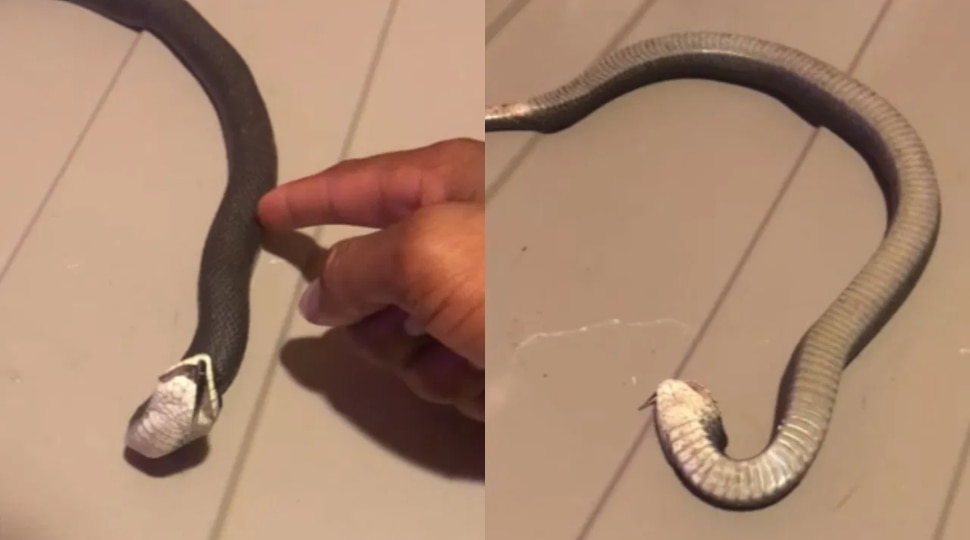 ಹಾವು ತನ್ನ ಯಜಮಾನನೊಂದಿಗೆ ಆಟವಾಡುವಂತಿದೆ. ನೆಲದ ಮೇಲೆ ಹಾವು ಸ್ವಲ್ಪ ತಲೆ ಎತ್ತುತ್ತದೆ. ನಂತರ, ಅದರ ಮಾಲೀಕರು ಹತ್ತಿರ ಬಂದು ಹಾವನ್ನು ನಿಧಾನವಾಗಿ ತಟ್ಟಿದರು. ಆ ನಂತರ ಹಾವು ಮಾಡಿದ್ದೇನು ಗೊತ್ತಾ? ಮೂರ್ಛೆ ಹೋಗಿ ಸತ್ತಂತೆ ಒಂದು ಕಡೆ ಬೀಳುತ್ತದೆ.